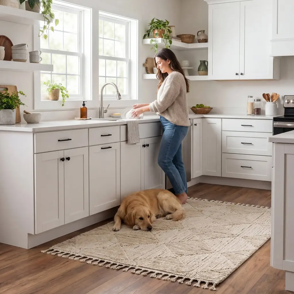 Bring the look of calming serenity into your space! This durable floor covering, evocative of a timeless heirloom, has just enough texture to enrich any room and pairs beautifully with any decor -- traditional, modern, or a bit of everything! With an incredibly soft texture underfoot, the look and feel of this floor piece will elevate its surroundings to new heights. Make the most of your time at home with our pet-friendly and easy to clean area rugs.