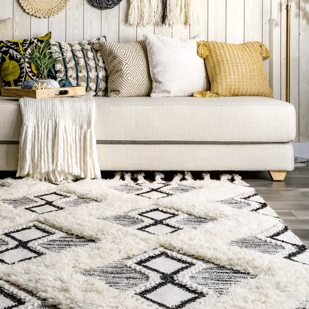 The subtle motif of this area rug blends classic style with functional comfort. Add a sense of texture to a modern living room with this attractive floor piece. Tassels around the top and bottom add the right amount of flair. Comes in various shapes. Make the most of your time at home with our pet-friendly and easy to clean area rugs.