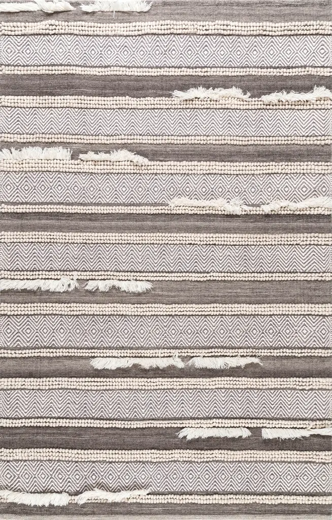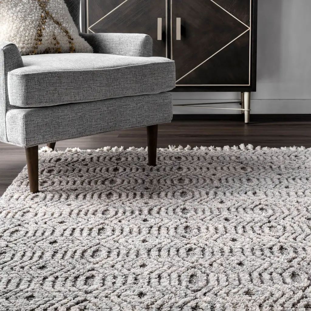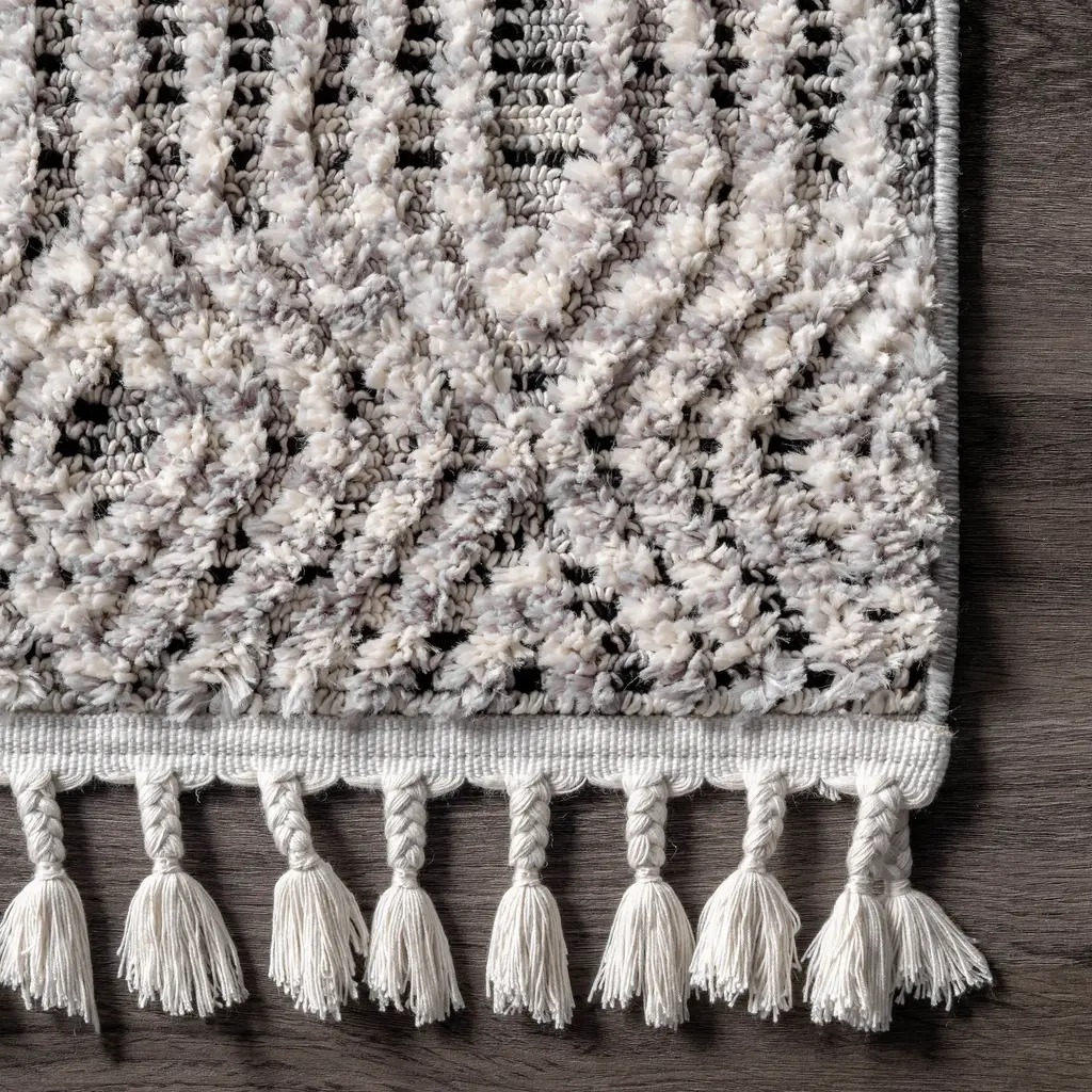 Shaggy Iris Trellis Tassel Rug | Grey - 4' X 6'