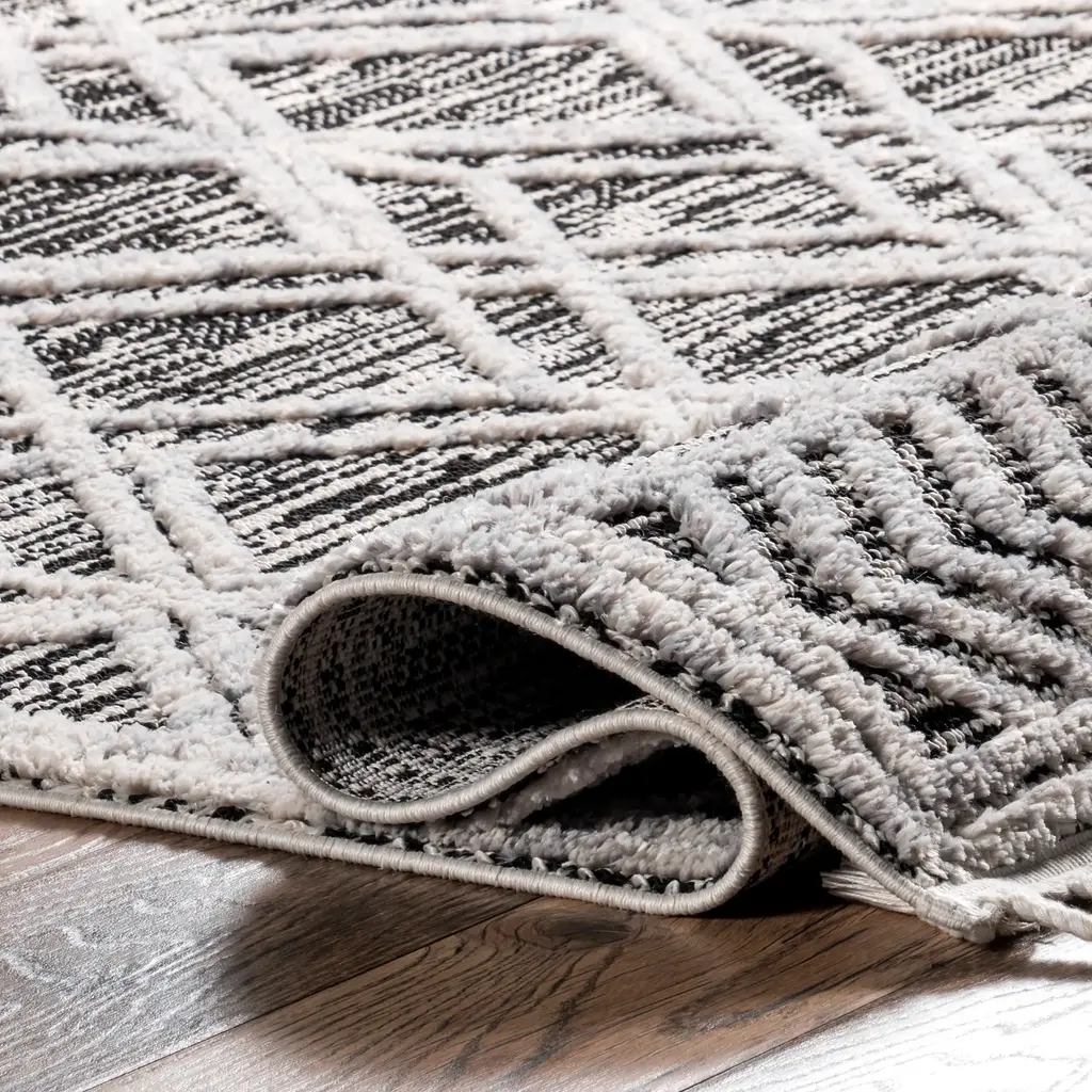 This shaggy area rug provides a soft and plush underfoot while a lattice element adds a flair to your home decor. A refreshing and dynamic piece that's sure to impress everyone who sees it. To capture the lavish essence of your new area rug, we recommend to gently fluff the shag rug by using a stiff brush or your hand. This rug is sure to provide durability in any living space. Comes in a variety of shapes. Elevate your living space with our pet-friendly and easy to clean rugs.