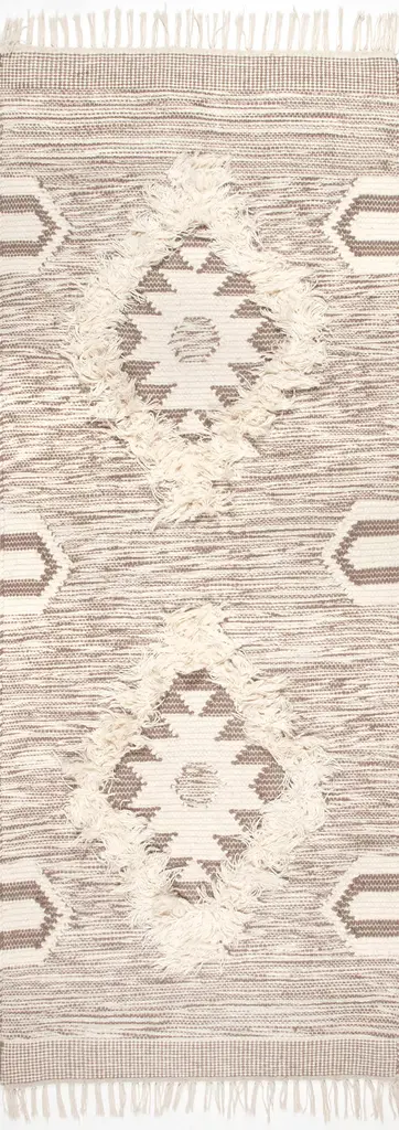 This 100% wool rug has a flatwoven base with a series of shaggy diamonds finished with tassels at both ends. The high-low pile, inspired by native design elements, makes this rug an ideal choice for mid-century modern or contemporary decor. Designed to withstand the rigors of heavy foot traffic and easy to clean, a carpet this unique is the ideal finishing touch. Choose from a wide array of colors and sizes. Make the most of your time at home with our pet-friendly and easy to clean area rugs.