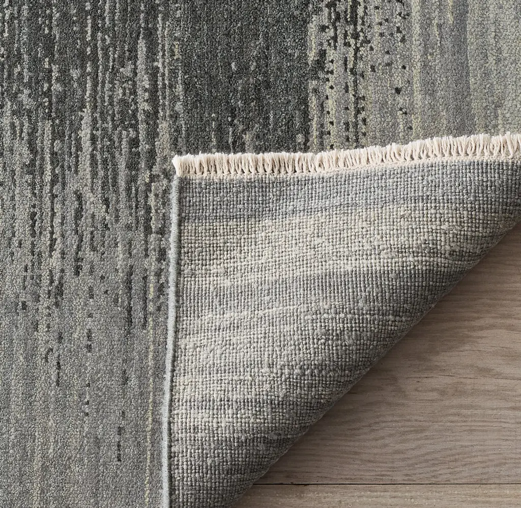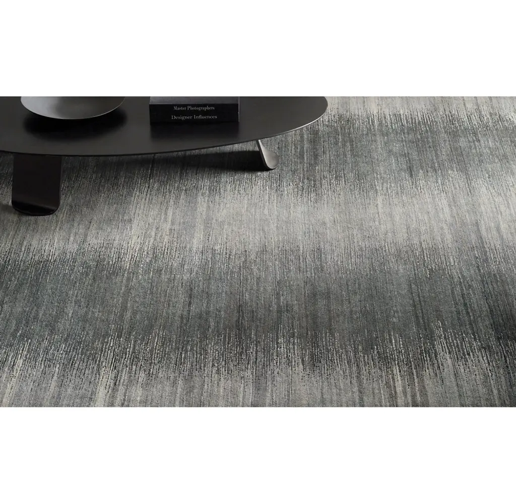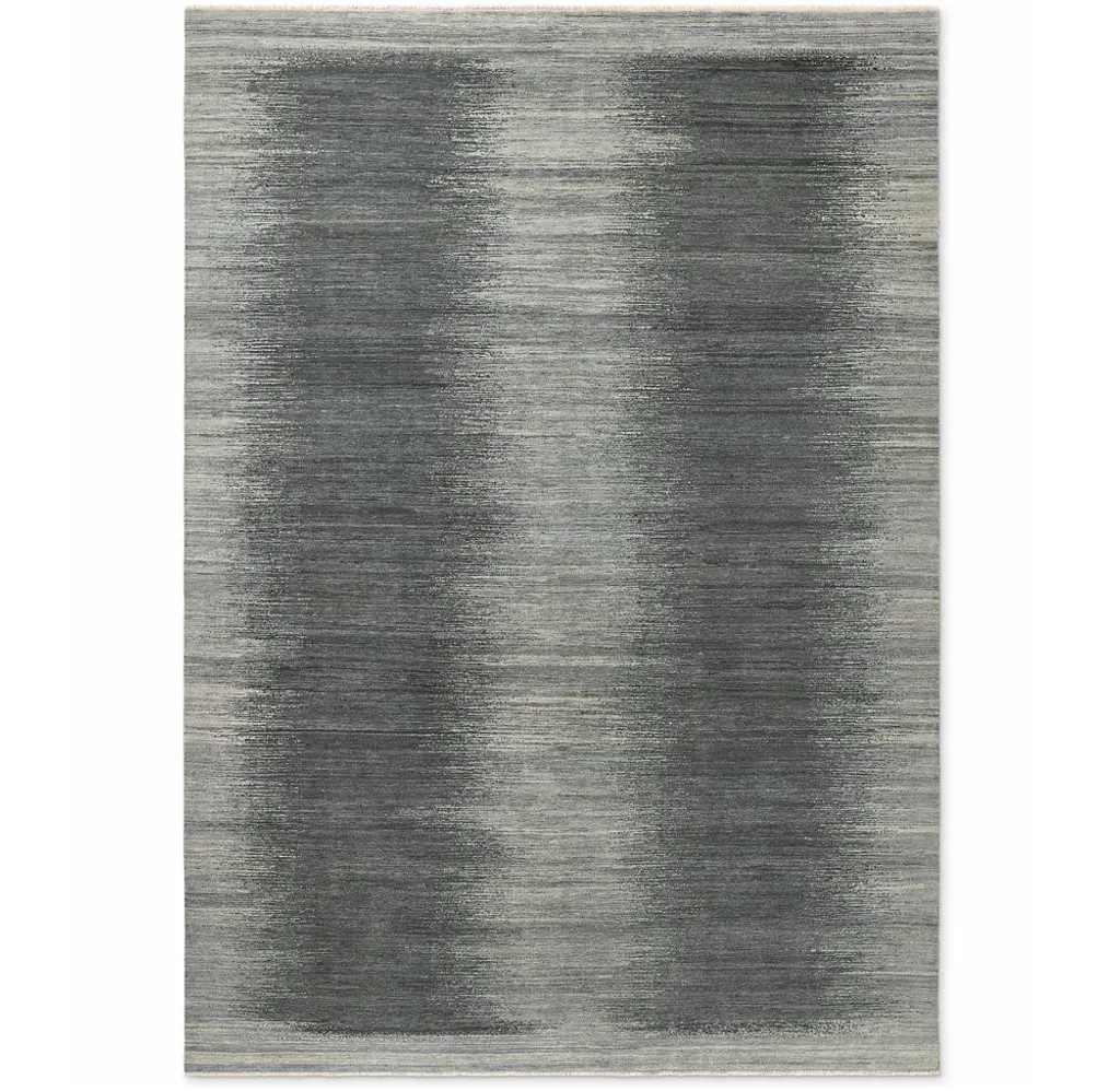 Defined by abrash shading and erased borders, Shahi's minimalist design reflects a contemporary take on Persian Mazandaran weavings. The fine yarns are spun from pure Bikaner wool, then hand-dyed to imbue the rug's ultrafine stripes with rich striations in tone.