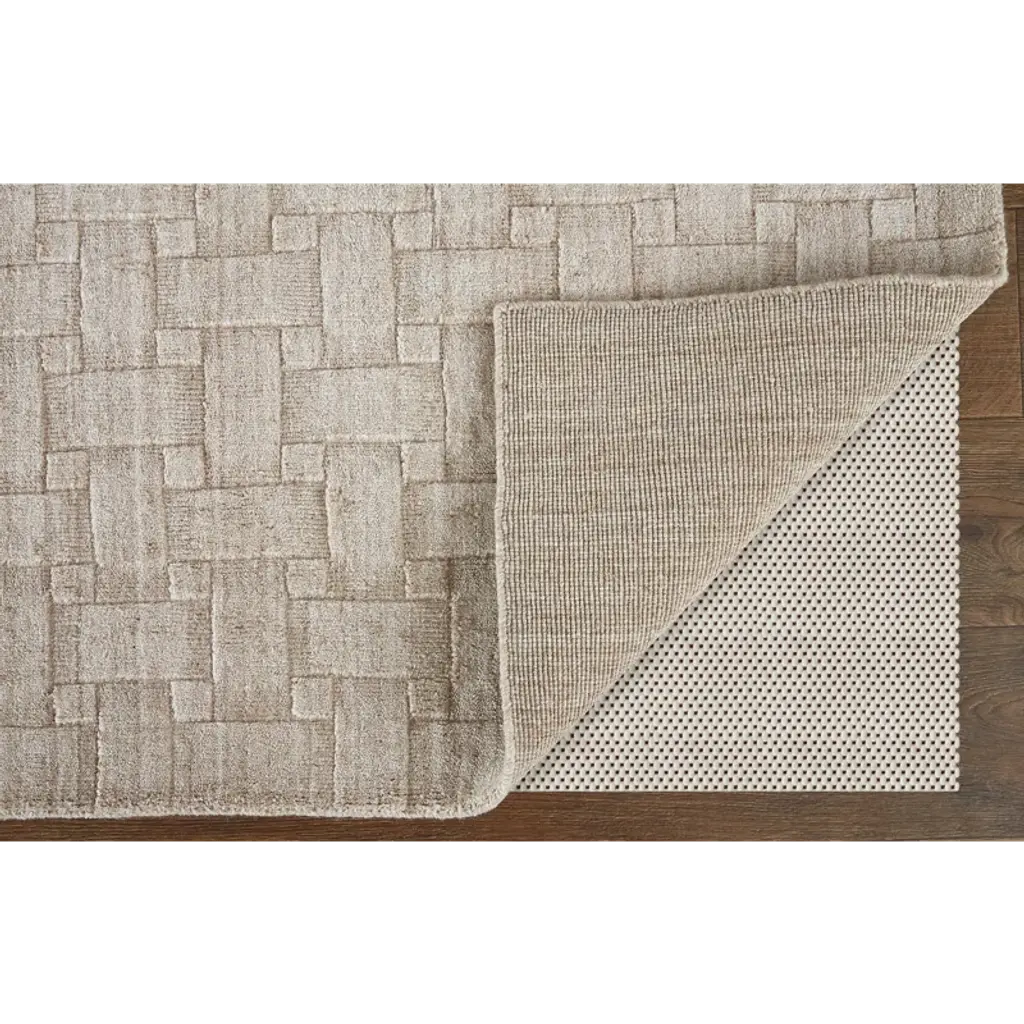 A flatweave rug like this one is bound to elevate any room with its dynamic geometric pattern that reminds us of the outer surface of baskets. Handwoven from wool and viscose, it features a faded beige hue that makes the design much more subtle and textured. With a 0.43" pile height, it provides ample cushioning underfoot in living rooms, hallways, and bedrooms. To keep it from slipping and sliding around, we recommend pairing it with a rug pad (sold separately).