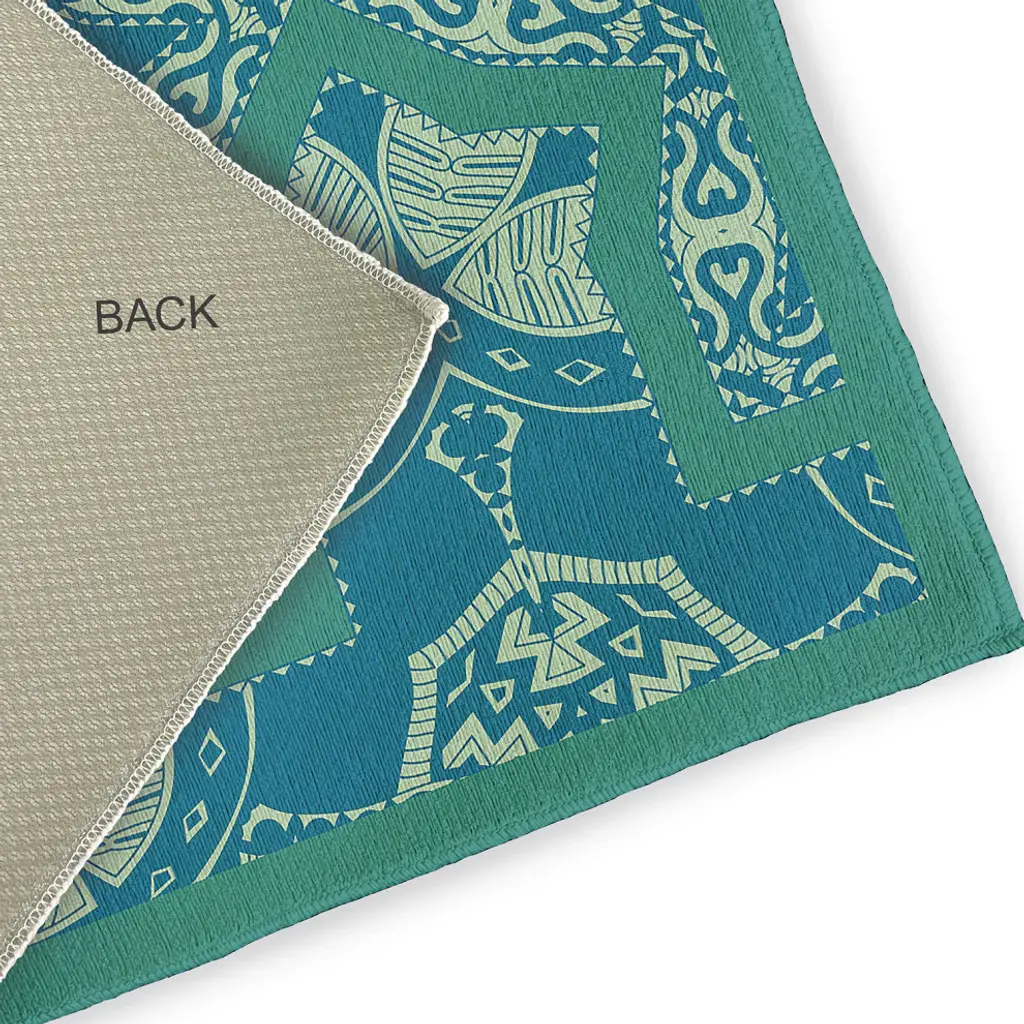 Create a colorful and radiant vibe around your home with the Shawl Indoor/outdoor Rug from our Happy Hippy Collection. Everyone will delight in the space defining design brought to your porch, patio, kitchen, or bathroom by this area rug. The artistic and colorful design is printed on a soft polyester base with a skid resistant backing, making it a perfect way to add color, flare and personality to any indoor or outdoor space. To clean, use a mild soap and lay flat to dry.