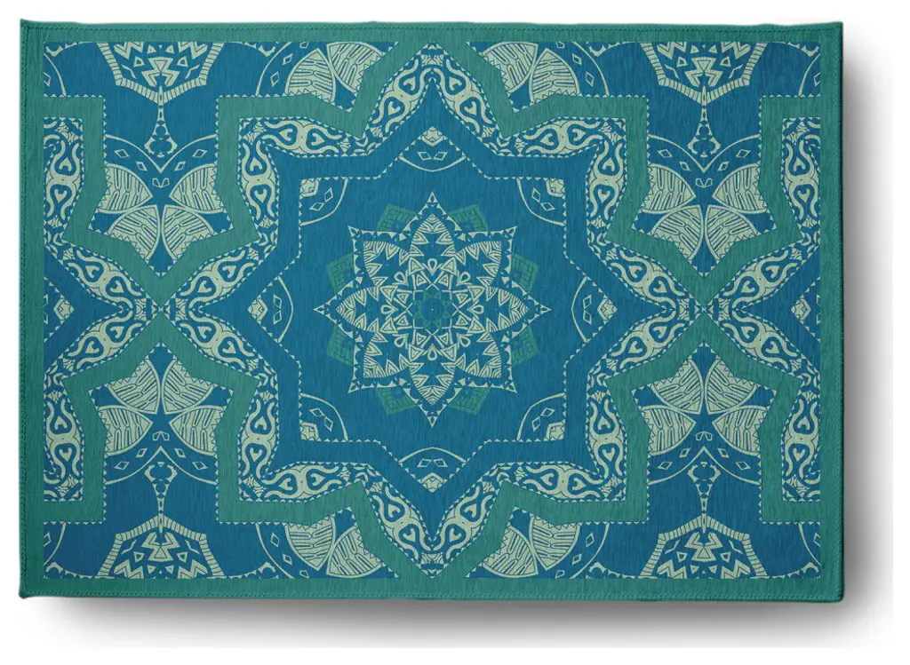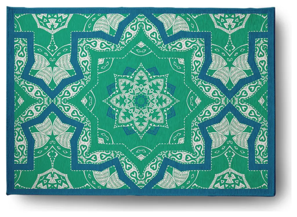 Shawl Indoor/outdoor Rug, Green Teal, 5' Round