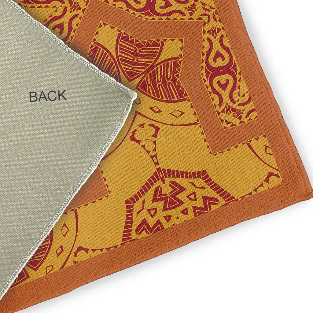 Create a colorful and radiant vibe around your home with the Shawl Indoor/outdoor Rug from our Happy Hippy Collection. Everyone will delight in the space defining design brought to your porch, patio, kitchen, or bathroom by this area rug. The artistic and colorful design is printed on a soft polyester base with a skid resistant backing, making it a perfect way to add color, flare and personality to any indoor or outdoor space. To clean, use a mild soap and lay flat to dry.