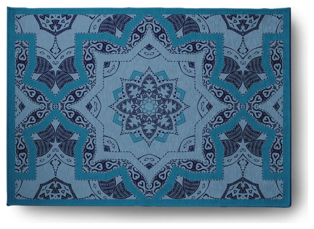 Create a colorful and radiant vibe around your home with the Shawl Indoor/outdoor Rug from our Happy Hippy Collection. Everyone will delight in the space defining design brought to your porch, patio, kitchen, or bathroom by this area rug. The artistic and colorful design is printed on a soft polyester base with a skid resistant backing, making it a perfect way to add color, flare and personality to any indoor or outdoor space. To clean, use a mild soap and lay flat to dry.