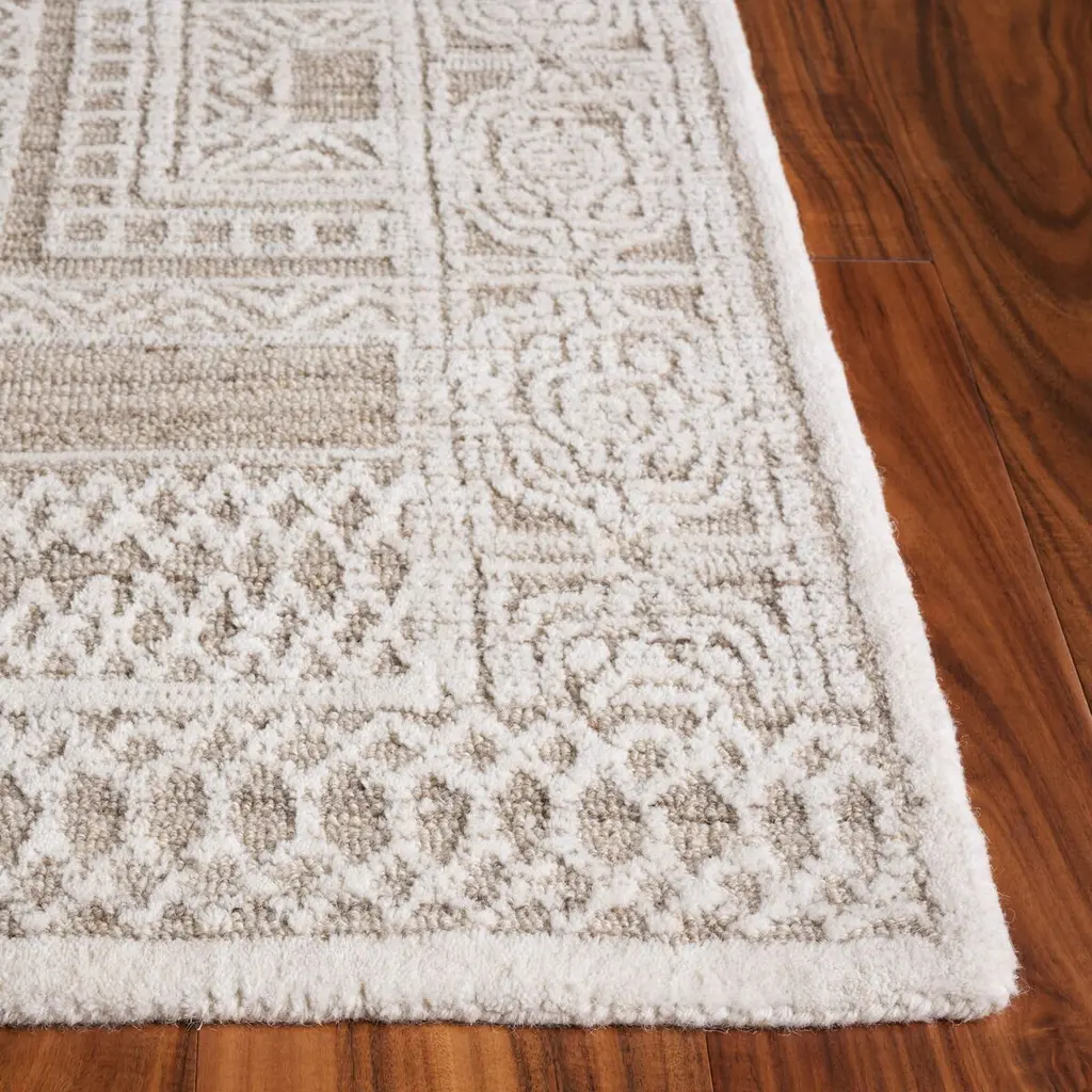 Introducing our exquisitely modern 4x6 foot area rug in a palette of beautiful beige and ivory colors. This small rectangular rug, with its humble height of 3/8 inches, brings luxury to any space. The creation of this unique rug employs the timeless hand-tufted technique using high-quality wool pile, ensuring durability and softness. Hailing from India, this rug manifests its country's renowned craftsmanship, assuring top-end quality. Immerse yourself in the beauty of this sophisticated piece and let it elevate your style with its modern chic design. Perfect for redefining and adding elegance to your home decor.