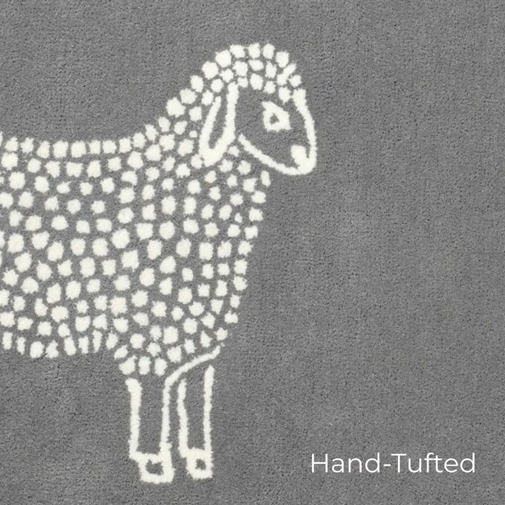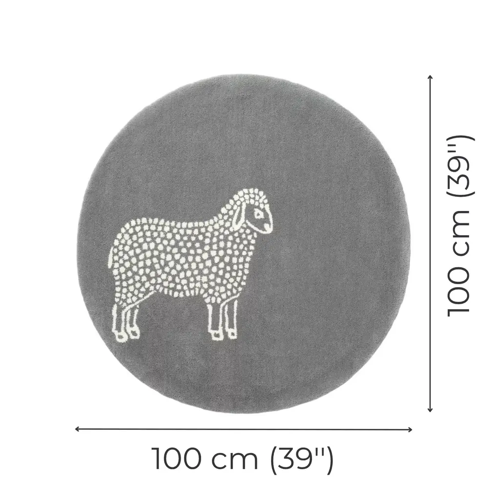 Add a touch of gentle character to your nursery or child’s room with this beautifully hand-tufted wool rug, featuring a single standing sheep at its centre. Thoughtfully crafted from 100% wool, it is naturally soft and durable. Perfect for creating a cosy spot for play, reading or quiet moments.The simple, neutral palette and sweet design adds a calming country feel to any room. At 1 metre in diameter, it’s just the right size to add warmth and personality without overwhelming the room.Each rug is handmade by skilled artisans, making it not just a practical addition but a piece to treasure.