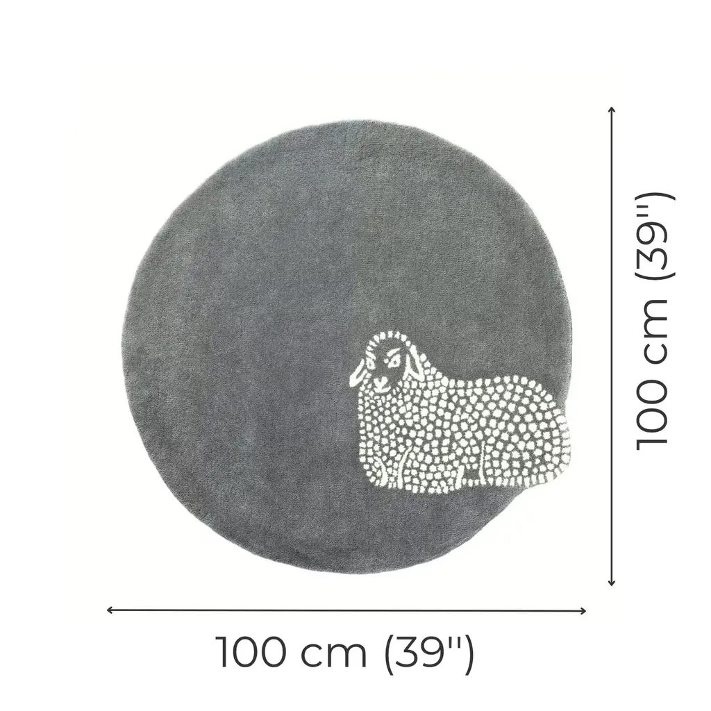 This charming hand-tufted wool rug features a single, peacefully resting sheep—a sweet, calming addition to any child’s room or nursery. Lovingly handmade from 100% wool, it offers a soft, natural texture underfoot and brings a cosy, peaceful feel to your little one’s space.With a neutral colour-scheme, the design is timeless and easy to style, while the circular 1-metre size makes it ideal for play corners, reading nooks or under a favourite chair. Each rug is crafted by skilled artisans, making every piece a unique addition to your home. Each rug is handmade by skilled artisans, making it not just a practical addition but a piece to treasure.