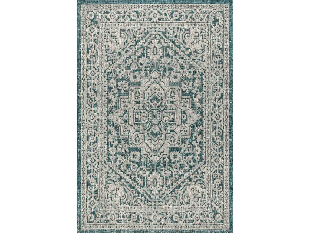 Shelter Island Indoor Outdoor Rug Cream & Blue 5'3"x7'6"