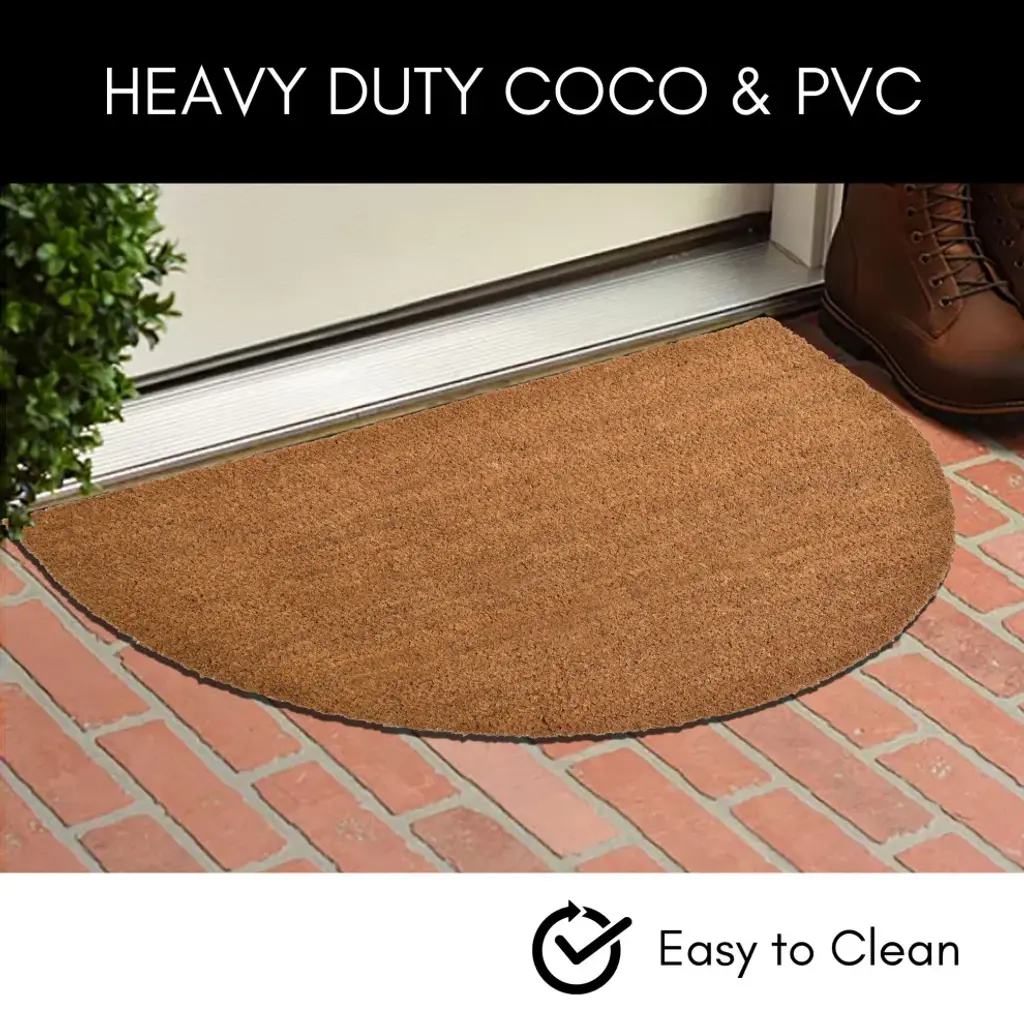 • SHELTERED DOOR MAT: this half moon shape mat should be placed in a covered, weather-protected area such as under an overhang, awning or portico. Nice dimensions of 30"L x 18" W x 5/8"H (75 L x 45 W cm)• ATTRACTIVE DESIGN: The material has a heavy-duty thick pile, and the uniform weaving allows air to circulate more easily, letting this half-round shape mat to dry up faster than traditional doormats• DURABLE AND NATURAL COCO COIR DOORMAT: made from the strong and durable husk of coconuts, natural coconut fibers, Handwoven by artisans in India, imported from France. Color natural• CLEAN FLOORS AND SAFETY: strong bristles wipe away dirt, debris, mud from your shoes. This door mat is made up of non-slip heavy duty PVC which prevents you to skid while you walk• EASY TO CLEAN: quickly clean the mat by shaking, sweeping or vacuuming. Weather resistant, mats can withstand extreme temperatures, hence stopping dirt from pilling up on the surfaceElevate your home''s entrance with our Half Round Coir and PVC Door Mat, a perfect fusion of style and functionality. Crafted from the sturdy husk of coconuts, the natural coir fibers provide exceptional durability. Complementing this strength, the non-slip PVC base ensures not only a beautiful design but also adds longevity. Experience the joy of cleaner interiors with this mat''s strong bristles, designed to effortlessly wipe away dirt, mud, and even snow from your shoes. Let it be the first line of defense that keeps your home sparkling. Enhance your doorstep with a touch of uniqueness. The natural design adds a charming flair to both your front and back doors, ensuring your mat is not only visually pleasing but also highly functional. Effortless maintenance is at your fingertips. Cleaning this door mat is as simple as giving it a shake, a sweep, or a quick vacuum. This low-maintenance beauty seamlessly integrates into your routine. With long dimensions of 30x 18 inches, this mat offers enough coverage. The coir and PVC blend, coupled with its decorative design, makes this doormat an inviting and practical addition to any entryway.