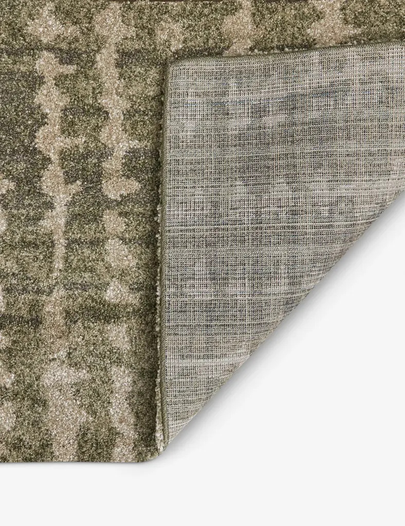 Layer plush texture underfoot with the Sheridan rug. The abstract design offers a dynamic look grounded in a lush tan-on-green colorway, perfect for modern decor. With its thick pile and tranquil tone, this rug sets a soft foundation for quiet comfort in a bedroom or lounge.