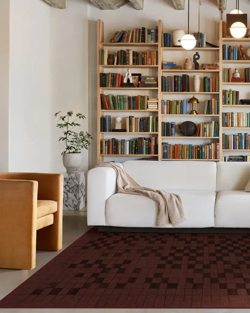 Bring the spirit of board games to your playroom, home, or office with our Shiloh Check Burgundy Rug. Inspired by checkerboards, this tailored design features squares in subtle and varied distressing. It's a perfect blend of classic and contemporary, featuring tonal shades of burgundy that bring warmth to any room. Water-resistant, stain-resistant, and machine-washable. Rug colors may vary slightly according to your device and the lighting in your space.