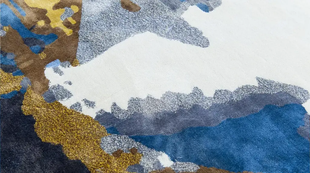 This rug was designed from a photograph of a cracked wall in a classroom. SHINCHUU represents the shattering of structures, giving voice to colors and presenting the infinite horizon of the imagination.