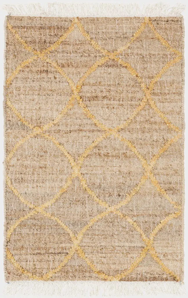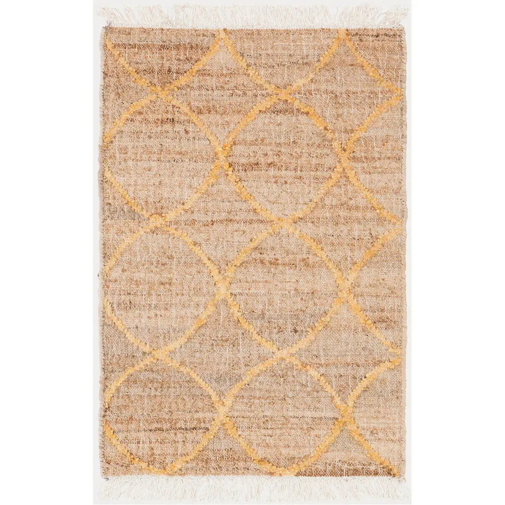 Collection: Shippensburg Colors: Cream, Orange, Tan Construction: Hand Woven Material: Face: 100% Jute Pile: No Pile Styles: Natural Fibers Made In: India Thickness: 0.07" Fringe Length: 1.5" Price Range: $$$$$ (Affordable)