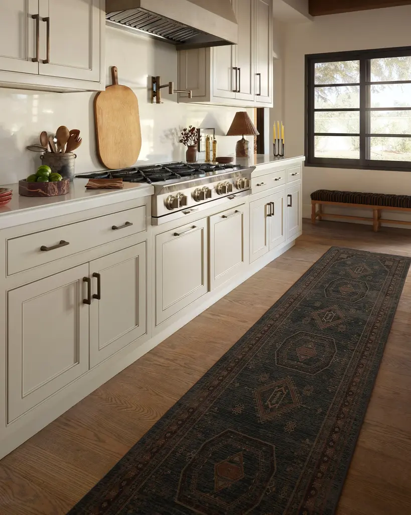 Welcome life home with our Shira Bordeaux Rug. Full of imaginative motifs inspired by artisanal Spanish creators, this worldly, geometric design uses a dark, neutral brown background as the canvas for rich accents such as burgundy and saturated brown. The neutral linework complements delicate sunspots, giving an aged feel that offers a worn, welcoming aesthetic. Water-resistant, stain-resistant, and machine-washable. Rug colors may vary slightly according to your device and the lighting in your space.
