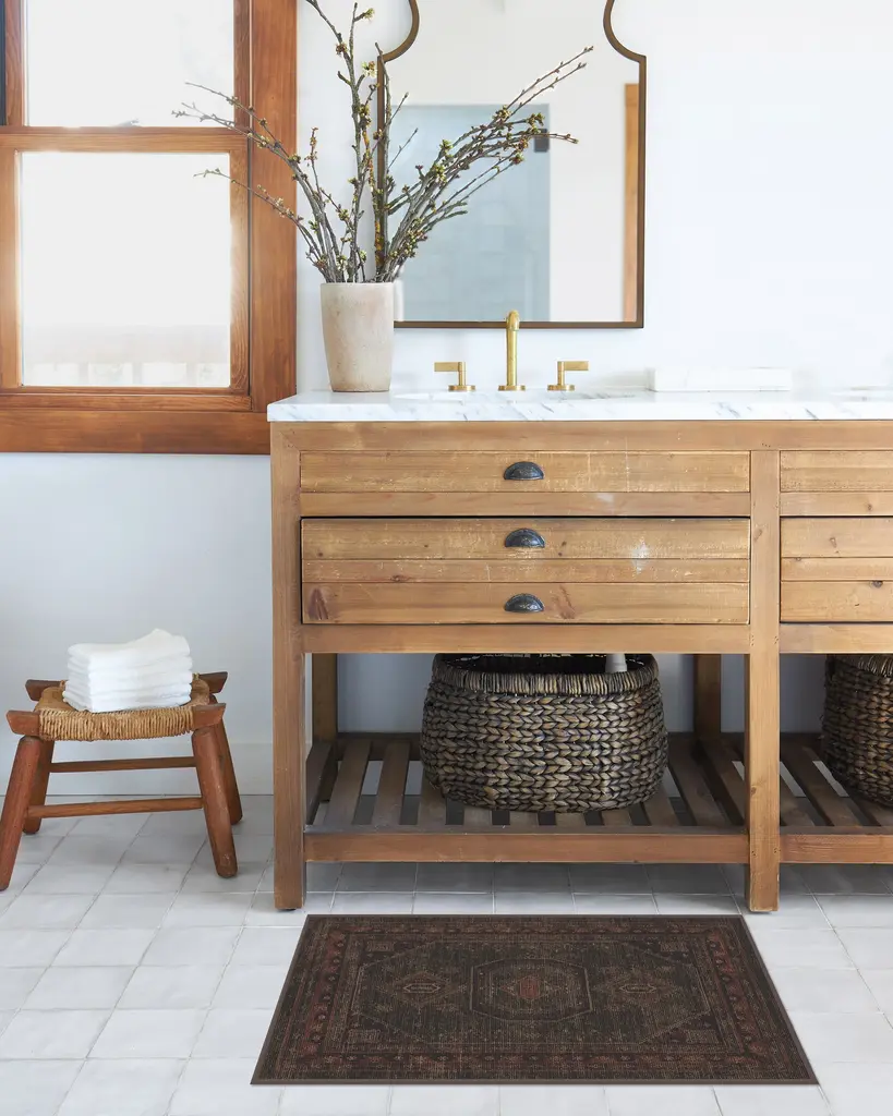 Welcome life home with our Shira Bordeaux Rug. Full of imaginative motifs inspired by artisanal Spanish creators, this worldly, geometric design uses a dark, neutral brown background as the canvas for rich accents such as burgundy and saturated brown. The neutral linework complements delicate sunspots, giving an aged feel that offers a worn, welcoming aesthetic. Water-resistant, stain-resistant, and machine-washable. Rug colors may vary slightly according to your device and the lighting in your space.