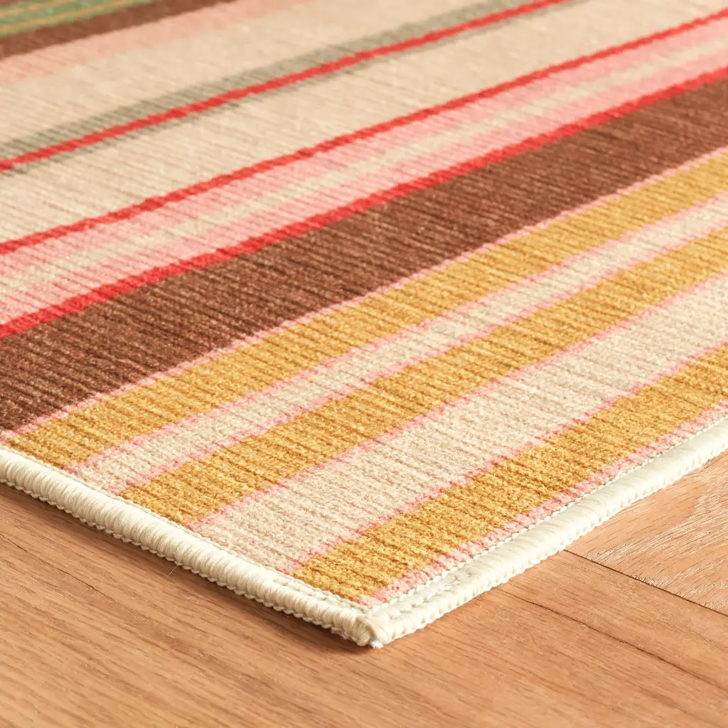Part of our best-in-class collection of design-focused, machine-washable rugs. With its sunny style and vivid vertical stripes, this superior-quality, machine-washable rug layers warmth, color, and easy-to-clean convenience into any space. Ideally suited for high-traffic areas like playrooms, kitchens, and entryways, it lies flat and remains soft underfoot with no shedding or fuzzing, even after multiple washes.