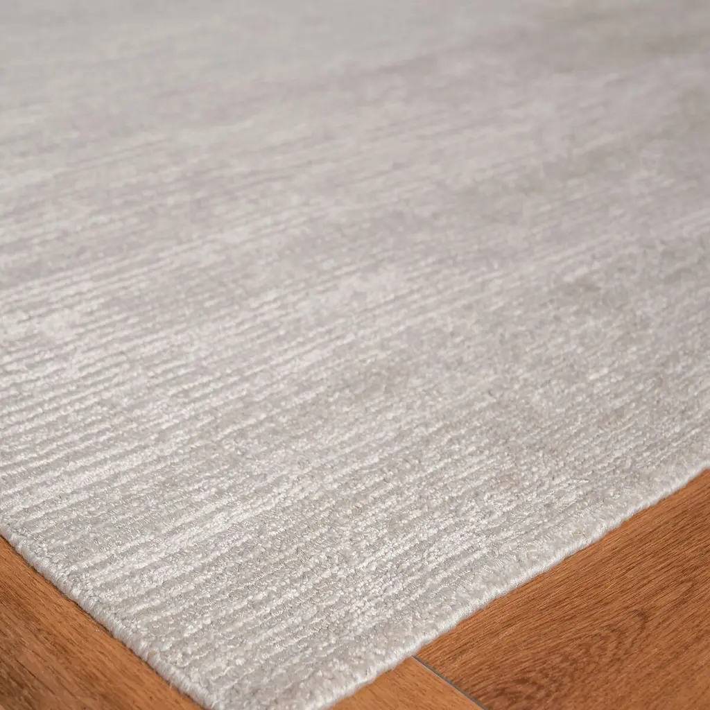 The Sierra rug features a soft, plush pile with loop accents in a random multi-directional line pattern. Each versatile rug is handmade with an ultra-fine blend of bamboo and banana silk fiber using today's contemporary soft neutral colors. An elegant and eye-appealing option for any room.