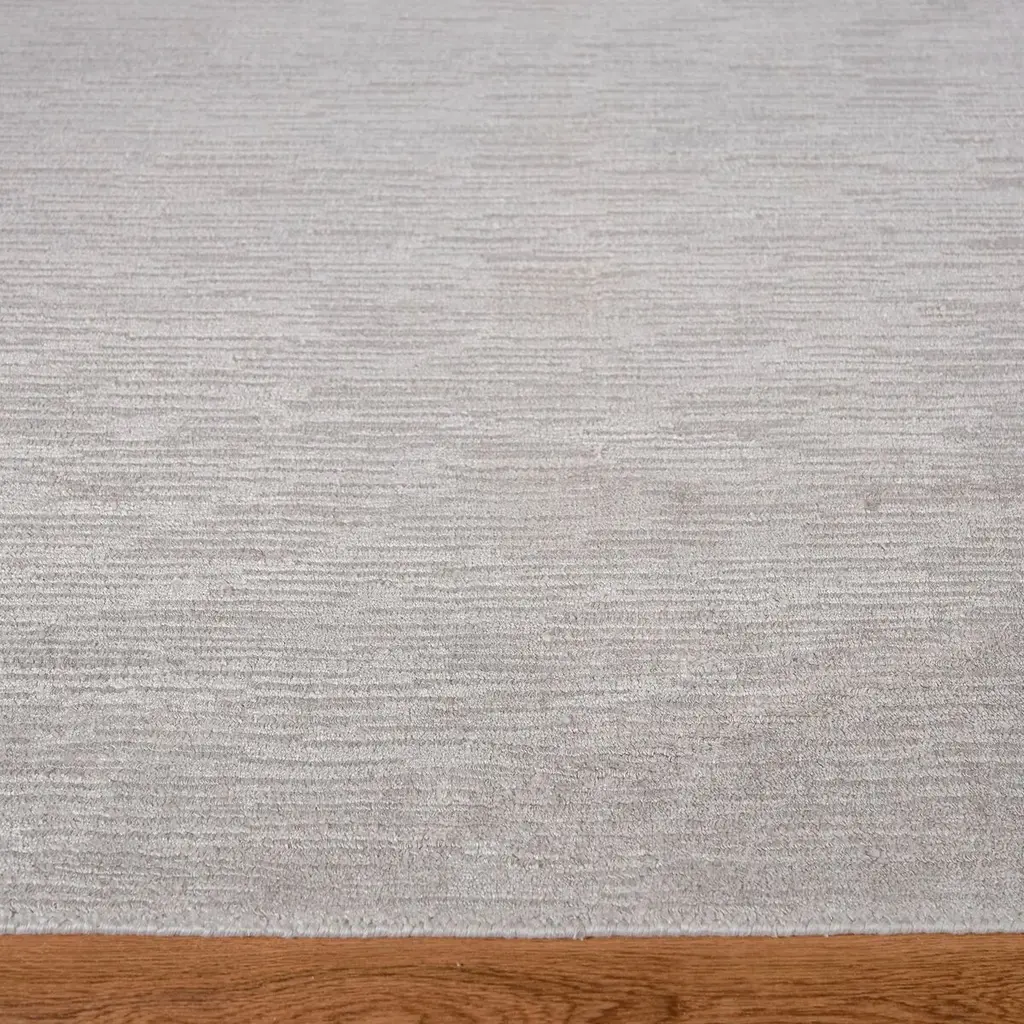 The Sierra rug features a soft, plush pile with loop accents in a random multi-directional line pattern. Each versatile rug is handmade with an ultra-fine blend of bamboo and banana silk fiber using today's contemporary soft neutral colors. An elegant and eye-appealing option for any room.