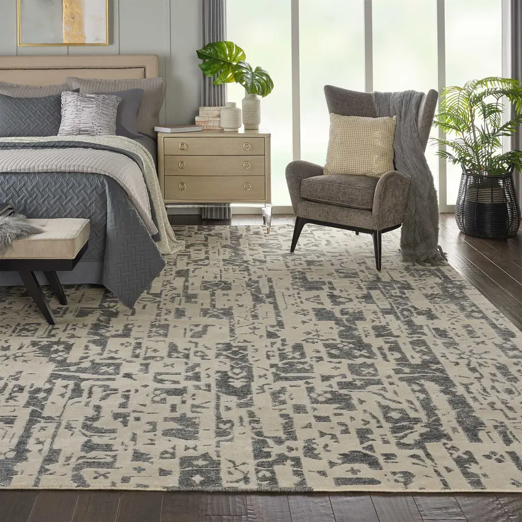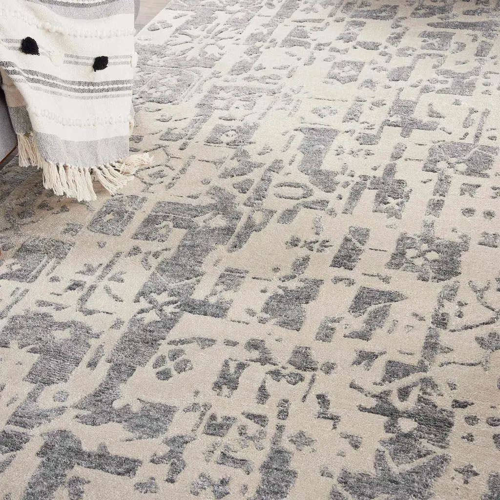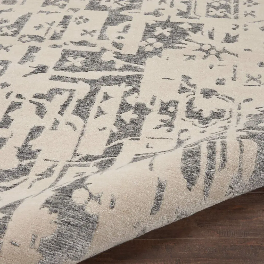 With an array of tribal and floral symbols shimmering in silvery grey, this finely hand-knotted rug from the Silk Shadows Collection brings exotic elegance to any space. This wool blend rug features remarkably silky texture, with subtle highlights and hand-carved finishes for a quality and texture that stands out in any setting. A perfect balance of tribal and contemporary decor styles.Redefine opulence with this luxurious collection of stunningly elegant rugs. Hand woven from premium wool and silk-like bamboo fibers, each velvety soft rug possesses a subtle yet luminous sheen. Designs feature contemporary and transitional motifs with tasteful colors and tone-on-tone contrasts. Ships In 7-10 Business Days Ships In 7-10 Business Days Ships In 7-10 Business Days Ships In 7-10 Business Days Custom sizes available Holds up well even under heavy foot traffic Silky smooth texture with glossy sheen Ideal for areas with moderate foot traffic Slight variations in color from product to product are natural characteristics of high quality handcrafted home decor. Your product may not exactly match what is pictured on this page.