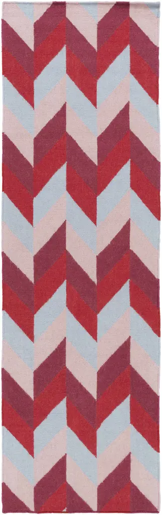 Collection: Silsbee Colors: Burgundy, Light Blue, Magenta, Mauve Construction: Hand Woven Material: Face: 100% Wool Pile: No Pile Styles: Contemporary Made In: India Thickness: 0.16" Price Range: $$$$$ (Affordable)