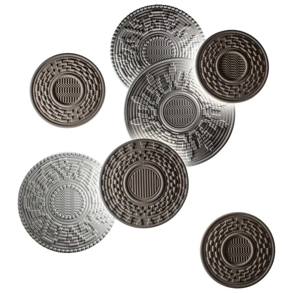 Alyssa is a hand knotted nautical rope rug, suitable for both outdoor and indoor use. In its patchwork version, the rug has a spiral development, with solid and perforated wheels that create an irregular shape. A fresh, unconventional rug that's perfect beside the pool, on the terrace and in the most elegant interiors. Waterproof and weather-resistant. Available in two sizes.