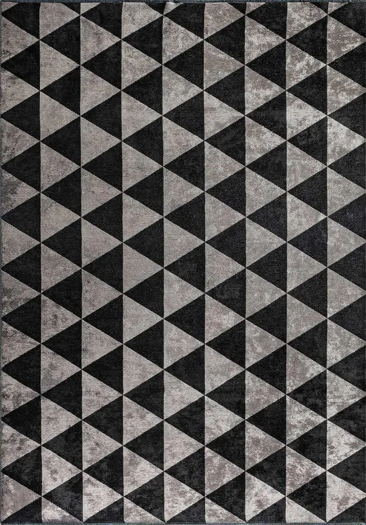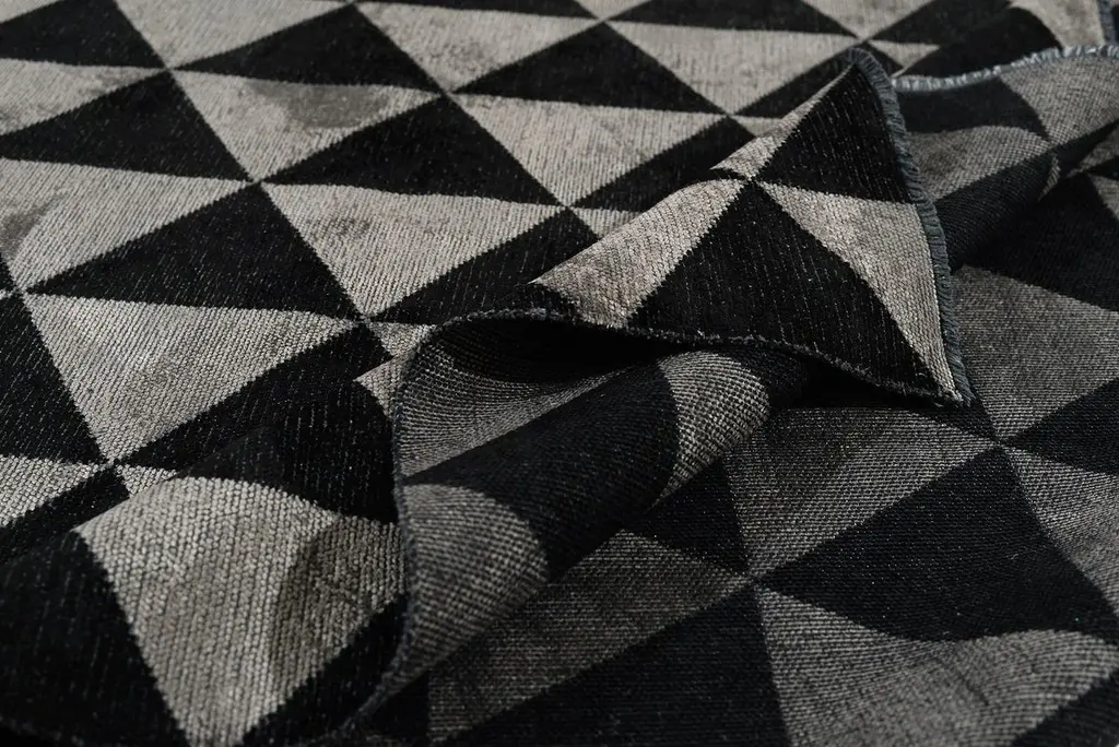 Silver Gray And Black Triangle Diamond Geometric Pattern Rug With Shine