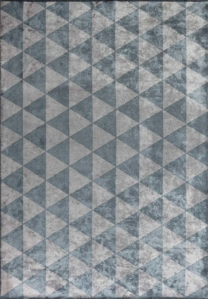Silver Gray And Light Blue And Triangle Diamond Geometric Pattern Rug With Shine