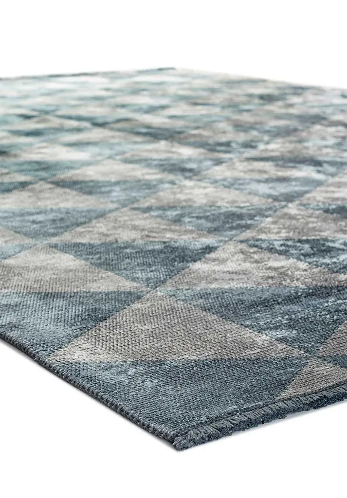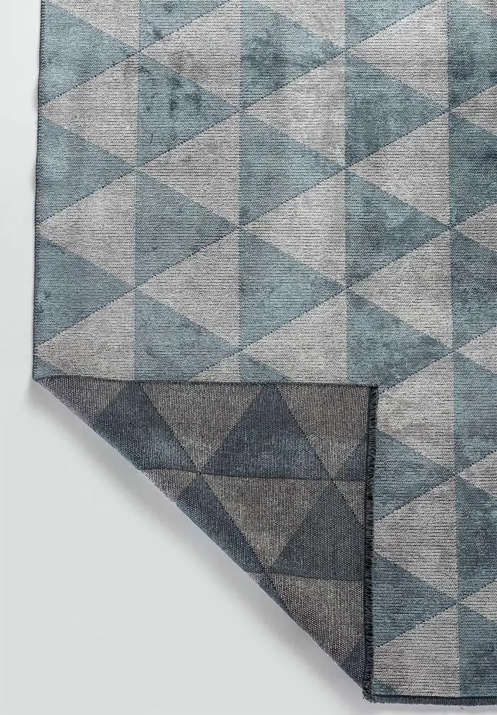 Silver Gray And Light Blue And Triangle Diamond Geometric Pattern Rug With Shine