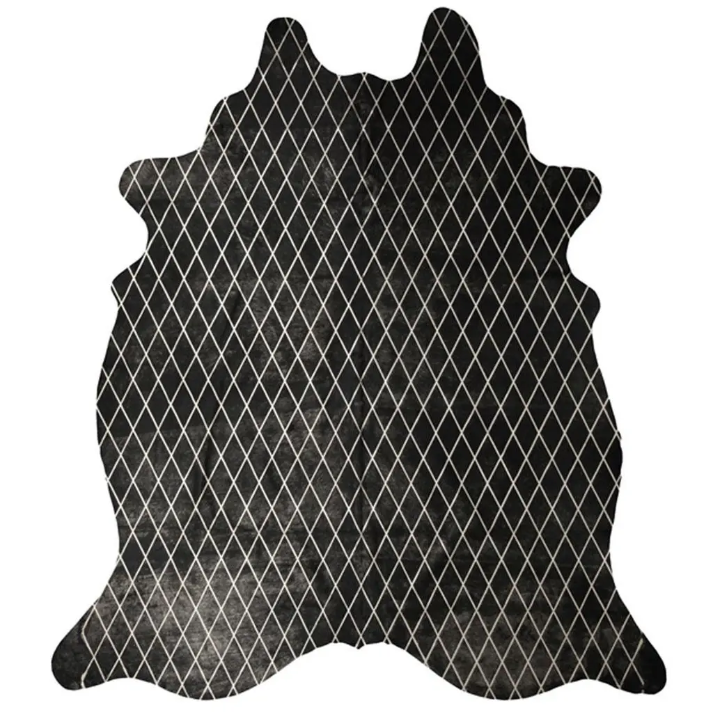 Silver Metallic Diamond Pattern Black Cowhide Rug, Large