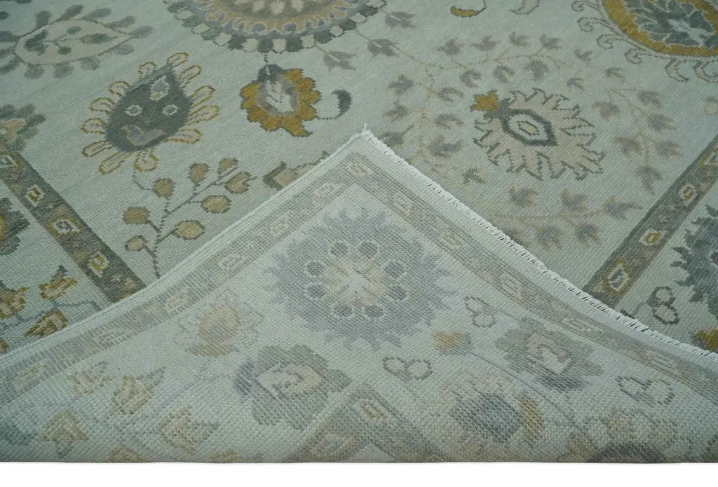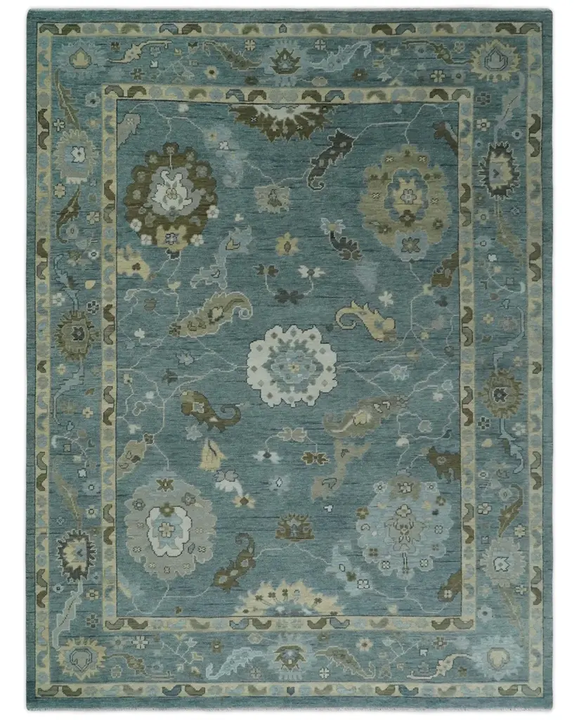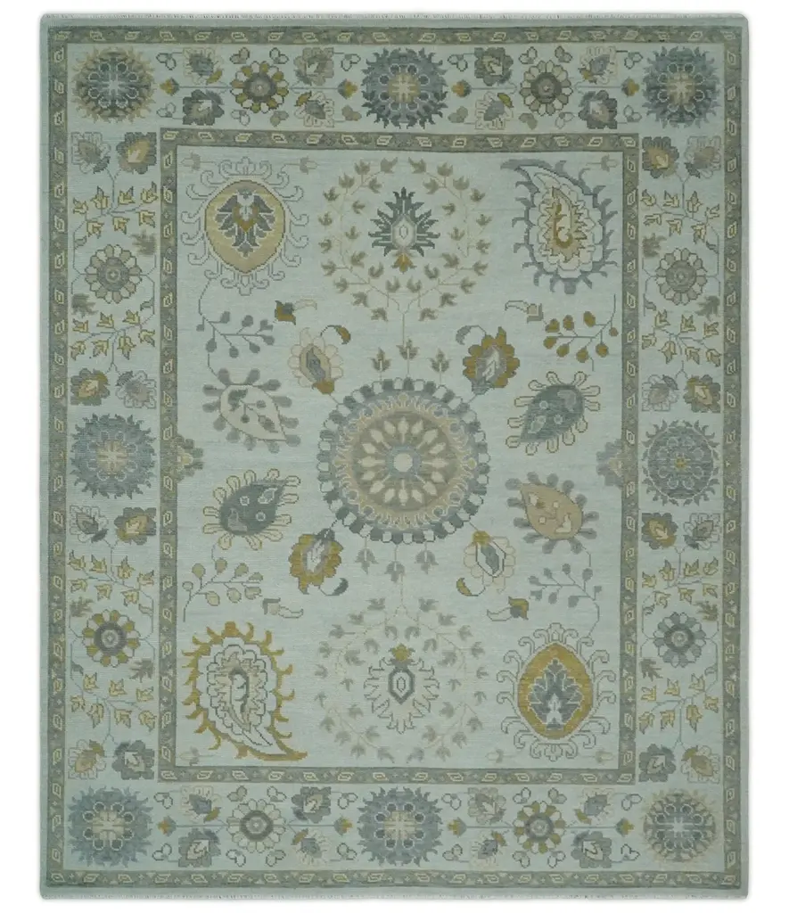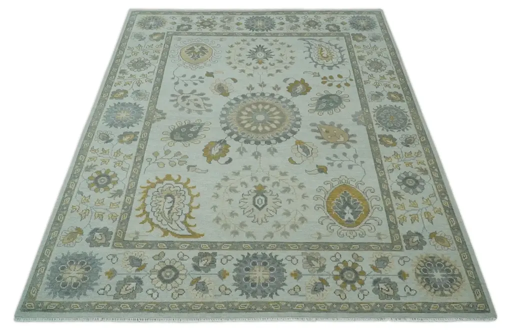 This hand-knotted wool rug features a Herati medallion design in silver, olive, and gray hues. Its multi-size pattern creates an eye-catching addition to any contemporary or traditional living space. Enjoy long-lasting quality and coziness with this beautiful area rug. Hand-Knotted Made with Wool Made to Order in 30-45 Days Color: Silver, Olive, and Gray USERS GUIDE Avoid prolonged moisture Vacuum regularly and/or shake to remove dust Do not pull any loose threads. Use scissors to simply cut the ends Blot spills immediately with a white cloth. Harsh chemicals may damage or fade the rug Use rug protectors under heavy furniture