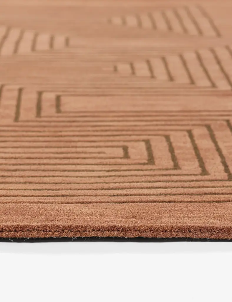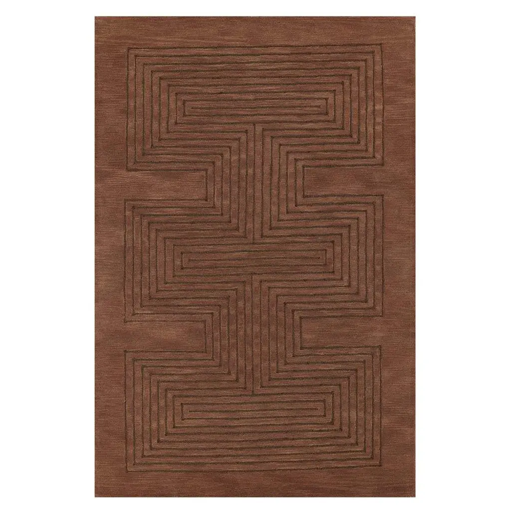 An intricate, maze-like design pops against rich, heathered copper hue of this understated, modern area rug. Made from hand-tufted wool fibers, it's a durable accent that seamlessly adapts to different rooms. Style this soft, tonal floor rug beside your bed or sofa, or under your dining table.