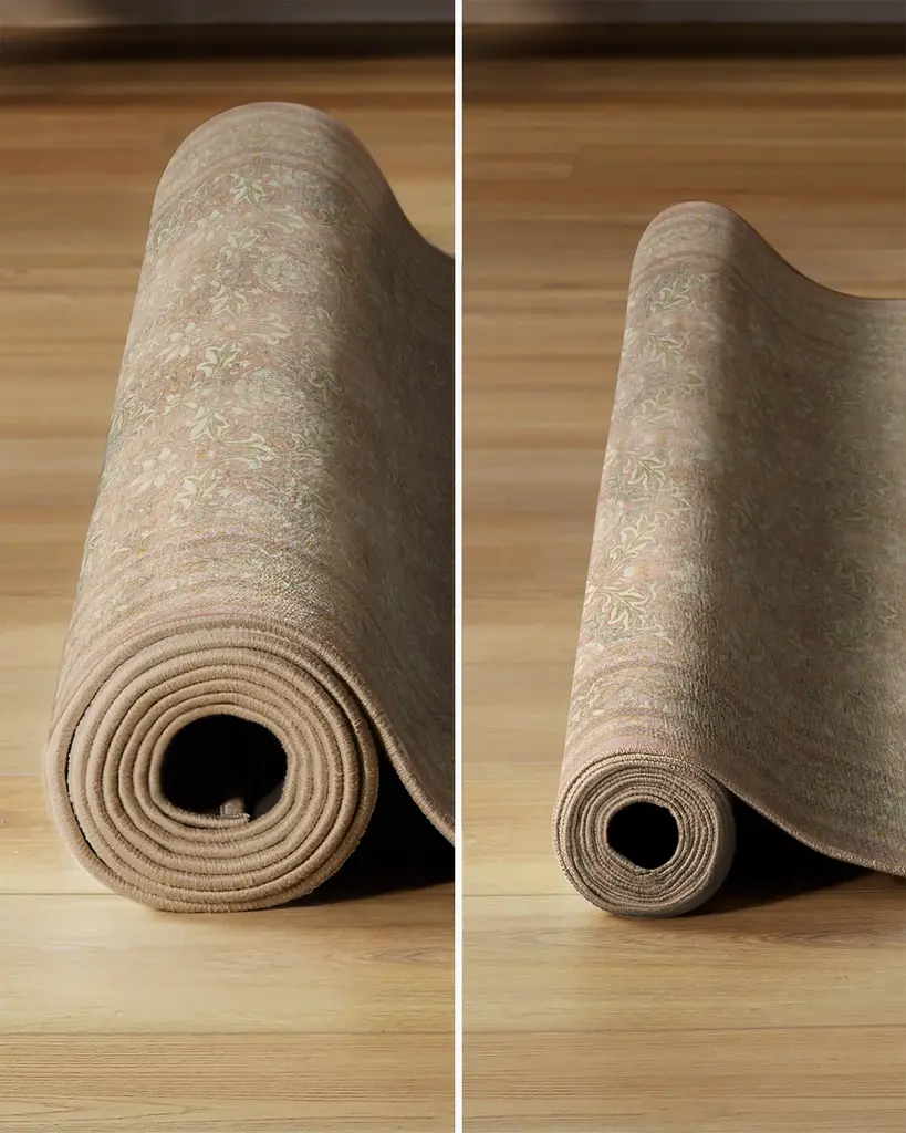 Get cozy with our Morris & Co. Simply Severn Soft Pink Rug. This delicate damask weaves repeat flowerheads with acanthus leaves for heritage charm. Originally printed at Morris's Merton Abbey workshop in South London, this elegant design showcases William Morris's beautiful handwork and dedication to detail. The cheerful palette of warm neutrals, blush pinks, and gold are softened by highlights of cream, for constant comfort. Water-resistant, stain-resistant, and machine-washable. Rug colors may vary slightly according to your device and the lighting in your space.