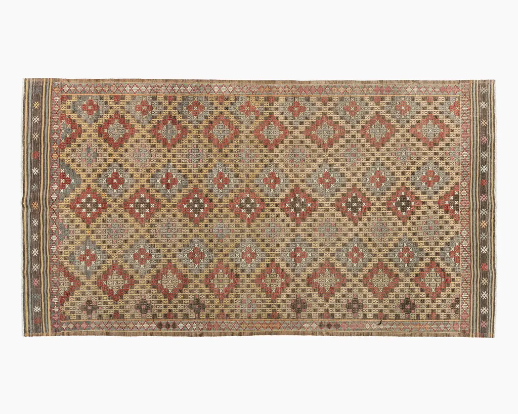 Our Turkish kilims are each one-of-a-kind. Much of our collection was woven between 30 and 100 years ago, and curated by us. Other rugs are fresh off the loom and made with traditional techniques. Known for their intricate patterns and tight, sturdy weaves, what began as a homemade, everyday comfort ultimately became a robust industry, embodying a profound artistic expression of Turkey's culture.