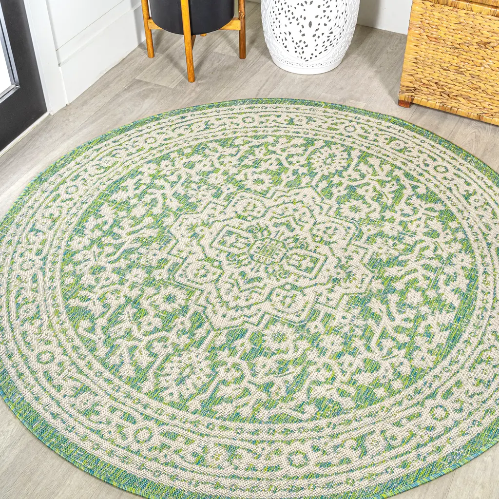 Sinjuri Medallion Textured Weave Indoor/outdoor Area Rug - Teal / 2 X 8