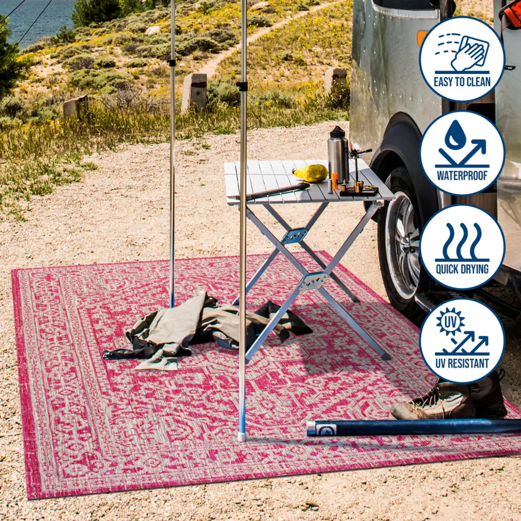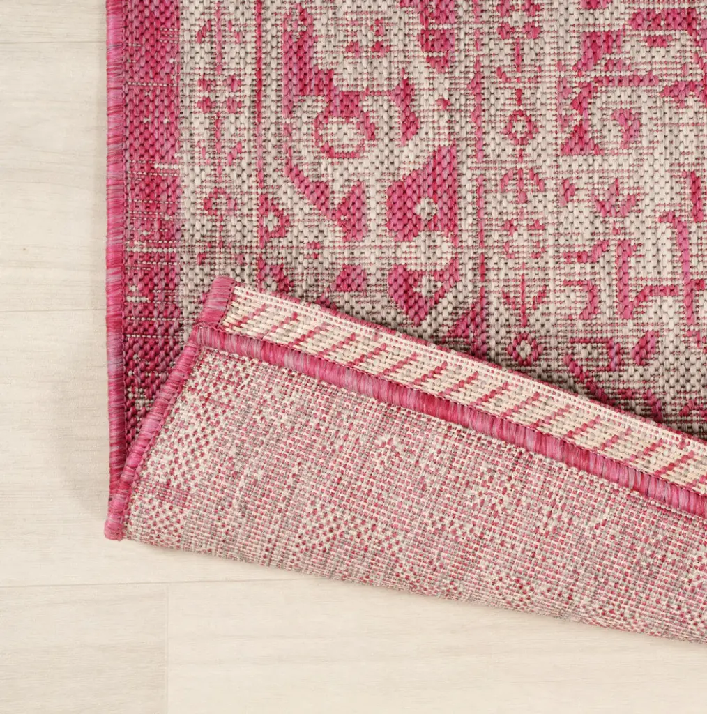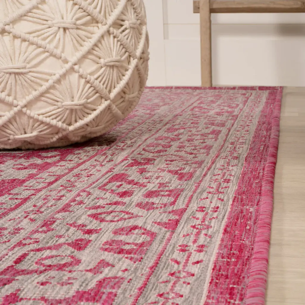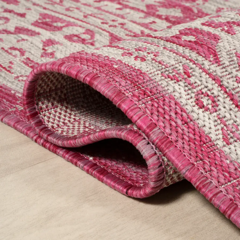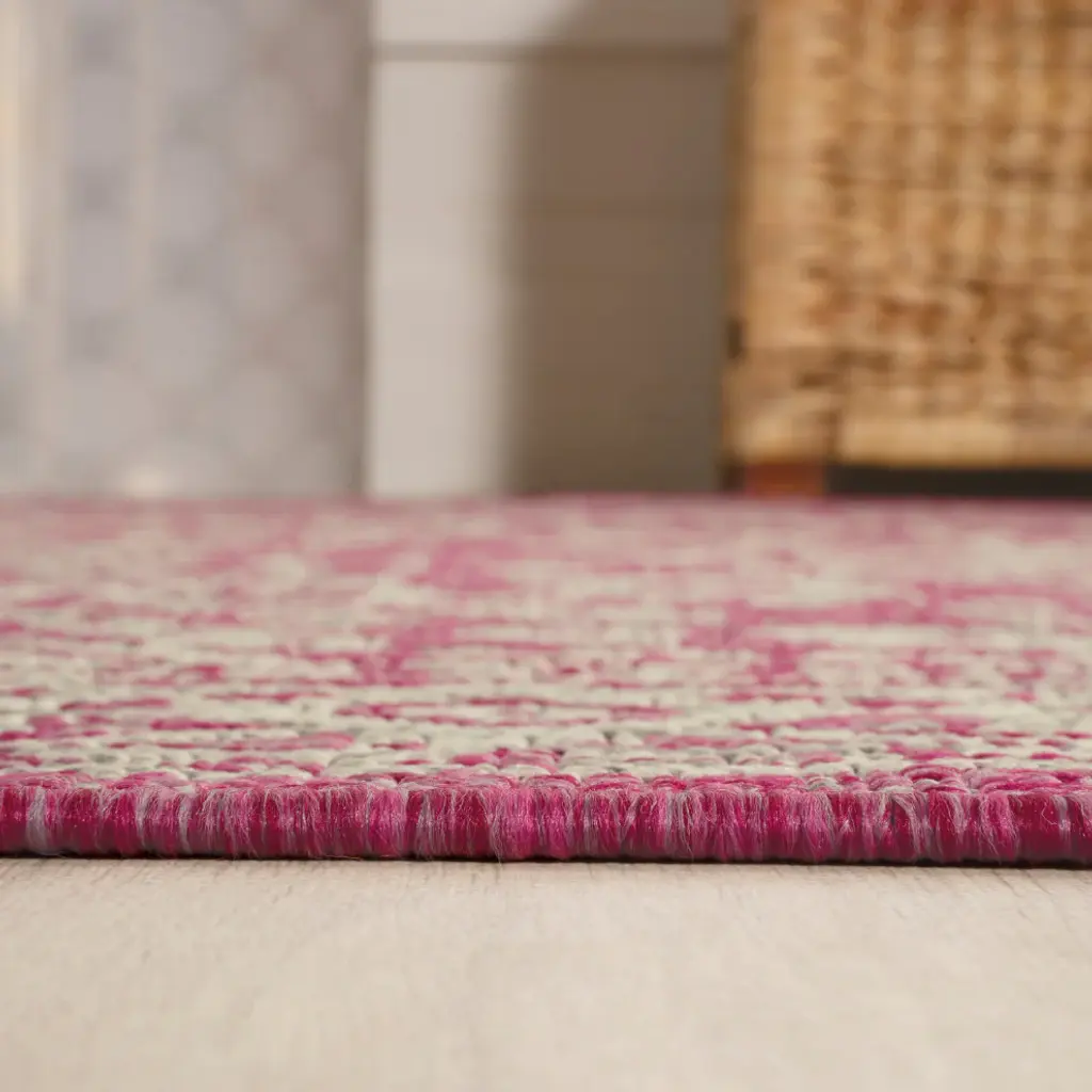This ornate medallion rug''s lively pattern adds exotic style to an outdoor porch or patio. Varied tones of soft green mingled with a cream pattern give this rug a hand-woven, vintage vibe. The flatweave design is great for high-traffic spaces indoors too.Features:• Water resistance with 0.19" pile• Fuchsia and cream with a handwoven mingled texture• Flat-weave construction of 100% polypropylene• 100% Polypropylene• No backing, use of rug pad is recommended (sold separately)• Power Loomed in Turkey• Actual Dimension: 2 ft. 2 in. X 10 ft.• Color: Fuchsia/Light Gray• Thickness measures: 0.19 in.• Available in multiple sizes and/or colorsRug Care:• Vacuum regularly and spot clean as needed; avoid direct and continuous exposure to sunlight; use brushless vacuum; remove spills immediately; if liquid, blot with clean, undyed cloth by pressing firmly around the spill to absorb as much as possible; for hard to remove stains, professional rug cleaning is recommended; store in a dry, well ventilated area and rotate for consistent wear• Packing and shipping may cause temporary creases in rugs, which will flatten out after a week on the floor; to expedite the process, try back-rolling your rug before laying it down, and then allow ample time for the remaining creases to relax• Please Note: Due to differences in monitors, some rug colors may vary slightly. Lengths and widths may vary from the published dimensions. Patterns may vary slightly according to shape and size selected.About us:Style your floors with JONATHAN Y. By combining fine craftsmanship and design, this New York creative studio is bringing fashion to your floors. The collection mixes sustainable organic materials, vibrant colors and trend worthy styles to create JONATHAN Y''s distinctive catalog of rugs.