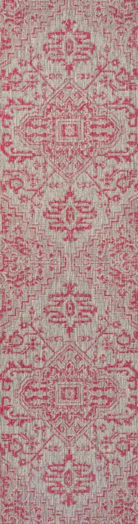 Sinjuri Medallion Textured Weave Indoor/outdoor, Fuchsia/light Gray, 2X10