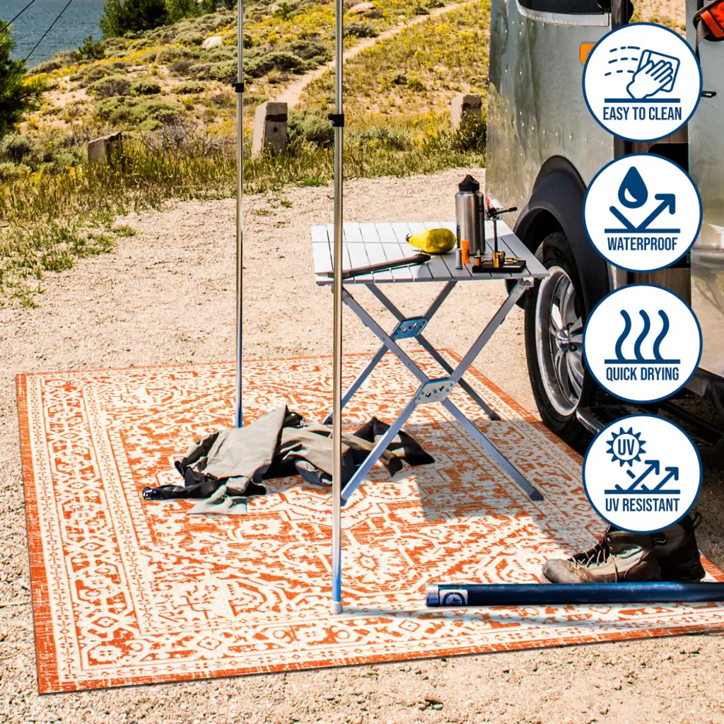 This ornate medallion rug''s lively pattern adds exotic style to an outdoor porch or patio. Varied tones of brown mingled with a cream pattern give this rug a hand-woven, vintage vibe. The flatweave design is great for high-traffic spaces indoors too.Features:• Water resistance with 0.19" pile• Orange and cream with a handwoven mingled texture• Flat-weave construction of 100% polypropylene• 100% Polypropylene• No backing, use of rug pad is recommended (sold separately)• Power Loomed in Turkey• Actual Dimension: 2 ft. 2 in. x 8 ft.• Color: Orange/Cream• Thickness measures: 0.19 in.• Available in multiple sizes and/or colorsRug Care:• Vacuum regularly and spot clean as needed; avoid direct and continuous exposure to sunlight; use brushless vacuum; remove spills immediately; if liquid, blot with clean, undyed cloth by pressing firmly around the spill to absorb as much as possible; for hard to remove stains, professional rug cleaning is recommended; store in a dry, well ventilated area and rotate for consistent wear• Packing and shipping may cause temporary creases in rugs, which will flatten out after a week on the floor; to expedite the process, try back-rolling your rug before laying it down, and then allow ample time for the remaining creases to relax• Please Note: Due to differences in monitors, some rug colors may vary slightly. Lengths and widths may vary from the published dimensions. Patterns may vary slightly according to shape and size selected.About us:Style your floors with JONATHAN Y. By combining fine craftsmanship and design, this New York creative studio is bringing fashion to your floors. The collection mixes sustainable organic materials, vibrant colors and trend worthy styles to create JONATHAN Y''s distinctive catalog of rugs.