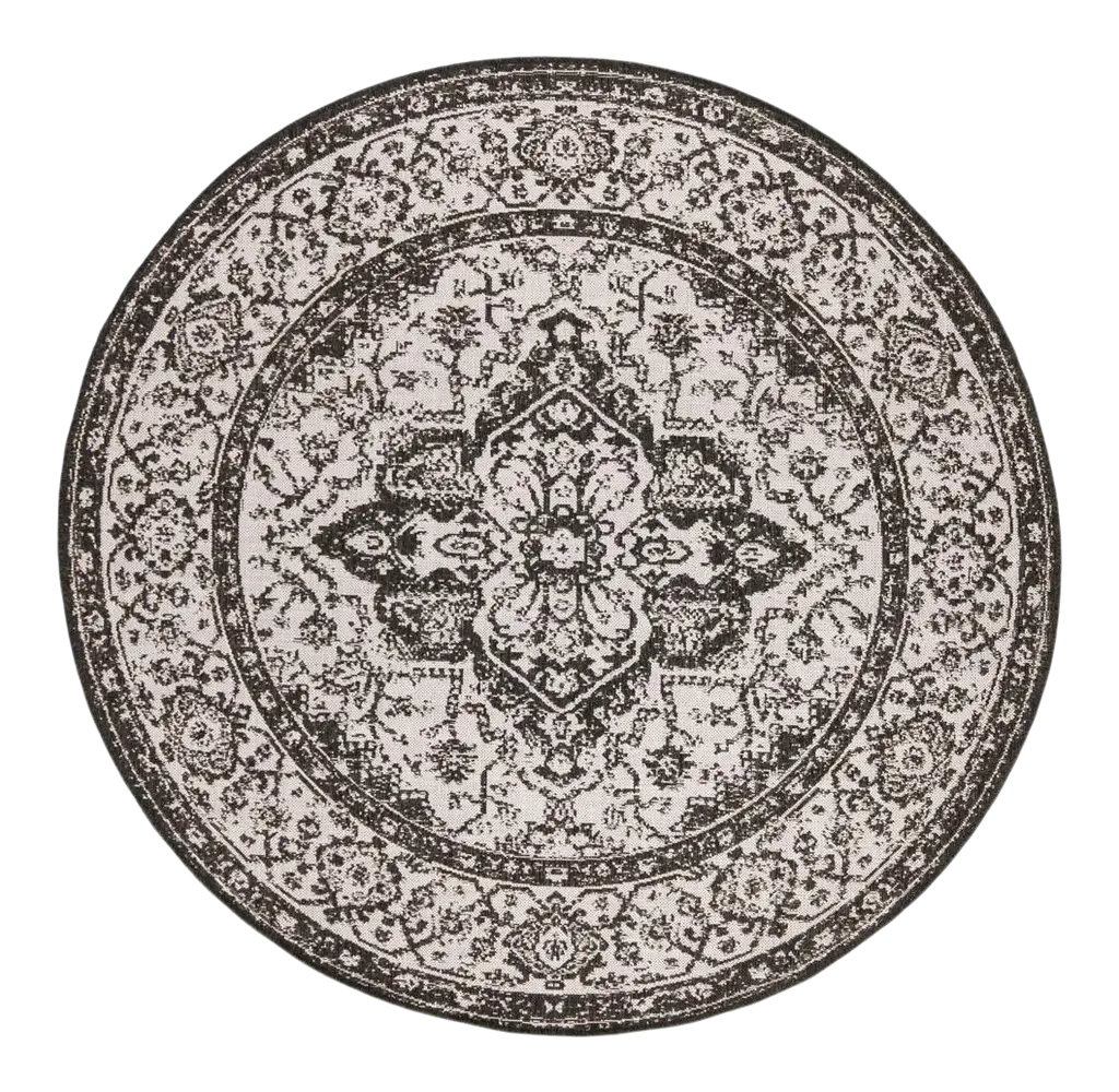 This ornate medallion rug''s lively pattern adds exotic style to an outdoor porch or patio. Varied tones of brown mingled with a cream pattern give this rug a hand-woven, vintage vibe. The flatweave design is great for high-traffic spaces indoors too.Features:• Water resistance with 0.19" pile• Orange and cream with a handwoven mingled texture• Flat-weave construction of 100% polypropylene• 100% Polypropylene• No backing, use of rug pad is recommended (sold separately)• Power Loomed in Turkey• Actual Dimension: 5 ft. 3 in. x 5 ft. 3 in. Round• Color: Orange/Cream• Thickness measures: 0.19 in.• Available in multiple sizes and/or colorsRug Care:• Vacuum regularly and spot clean as needed; avoid direct and continuous exposure to sunlight; use brushless vacuum; remove spills immediately; if liquid, blot with clean, undyed cloth by pressing firmly around the spill to absorb as much as possible; for hard to remove stains, professional rug cleaning is recommended; store in a dry, well ventilated area and rotate for consistent wear• Packing and shipping may cause temporary creases in rugs, which will flatten out after a week on the floor; to expedite the process, try back-rolling your rug before laying it down, and then allow ample time for the remaining creases to relax• Please Note: Due to differences in monitors, some rug colors may vary slightly. Lengths and widths may vary from the published dimensions. Patterns may vary slightly according to shape and size selected.About us:Style your floors with JONATHAN Y. By combining fine craftsmanship and design, this New York creative studio is bringing fashion to your floors. The collection mixes sustainable organic materials, vibrant colors and trend worthy styles to create JONATHAN Y''s distinctive catalog of rugs.