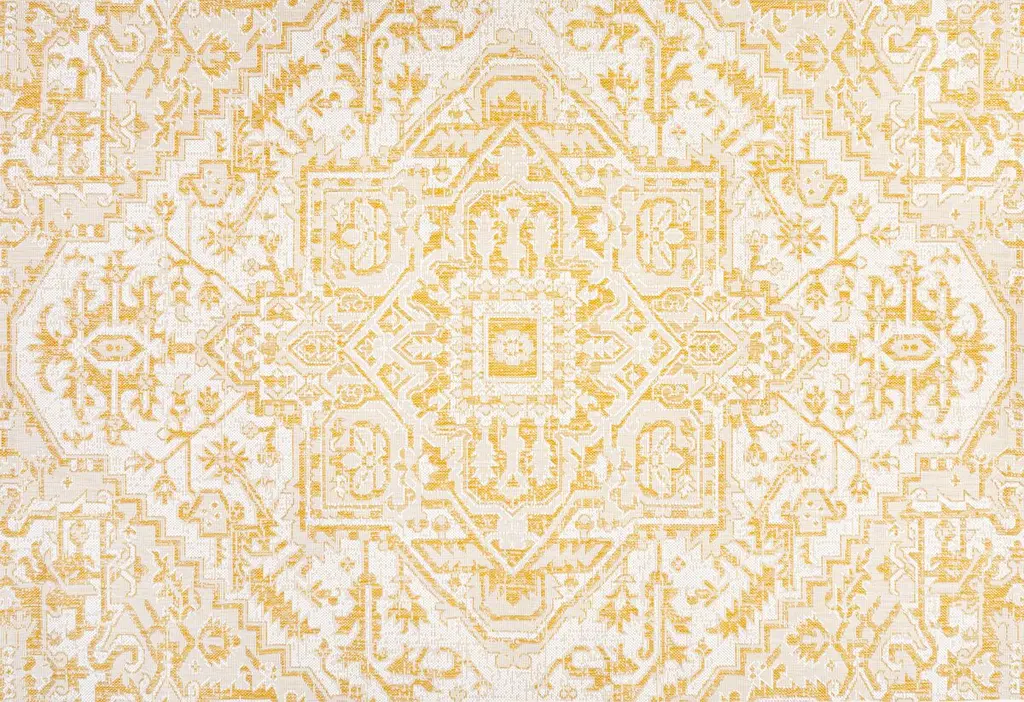 This ornate medallion rug''s lively pattern adds exotic style to an outdoor porch or patio. Varied tones of soft green mingled with a cream pattern give this rug a hand-woven, vintage vibe. The flatweave design is great for high-traffic spaces indoors too.Features:• Water resistance with 0.19" pile• Soft green and cream with a handwoven mingled texture• Flat-weave construction of 100% polypropylene• 100% Polypropylene• No backing, use of rug pad is recommended (sold separately)• Power Loomed in Turkey• Actual Dimension: 5 ft. 3 in. x 5 ft. 3 in. Square• Color: Yellow/Cream• Thickness measures: 0.19 in.• Available in multiple sizes and/or colorsRug Care:• Vacuum regularly and spot clean as needed; avoid direct and continuous exposure to sunlight; use brushless vacuum; remove spills immediately; if liquid, blot with clean, undyed cloth by pressing firmly around the spill to absorb as much as possible; for hard to remove stains, professional rug cleaning is recommended; store in a dry, well ventilated area and rotate for consistent wear• Packing and shipping may cause temporary creases in rugs, which will flatten out after a week on the floor; to expedite the process, try back-rolling your rug before laying it down, and then allow ample time for the remaining creases to relax• Please Note: Due to differences in monitors, some rug colors may vary slightly. Lengths and widths may vary from the published dimensions. Patterns may vary slightly according to shape and size selected.About us:Style your floors with JONATHAN Y. By combining fine craftsmanship and design, this New York creative studio is bringing fashion to your floors. The collection mixes sustainable organic materials, vibrant colors and trend worthy styles to create JONATHAN Y''s distinctive catalog of rugs.