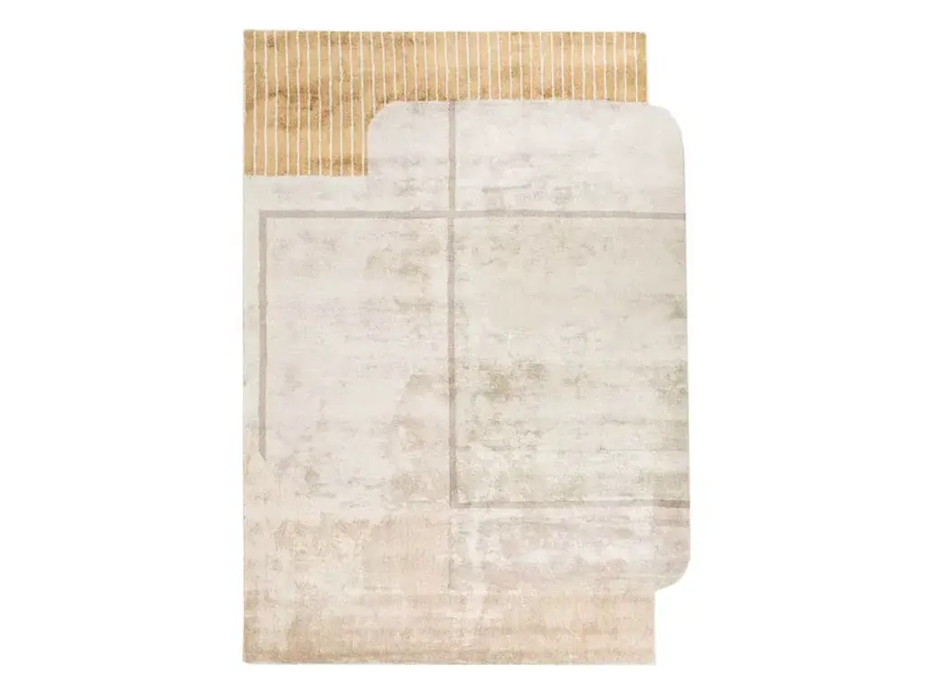 SINTESI is a handmade rug made from bamboo and New Zealand wool, with a pile height of approximately 7 mm and a weight of around 3,5 kg/m2.Custom dimensions upon request.The inspiration behind the Sintesi collection derives from the reinterpretation of basic geometries such as cubes, rectangles, and slabs, with a clear architectural memory, to characterize the environment with a functional modular continuity. The repetitive arrangement of these blocks accentuates the simplicity and uniformity of the shapes, while instilling a sense of rhythm and spatial progression. Principal volumes crafted from New Zealand wool are intersected by delicate luminous corridors achieved through the use of bamboo silk and precise cutwork at varying heights.