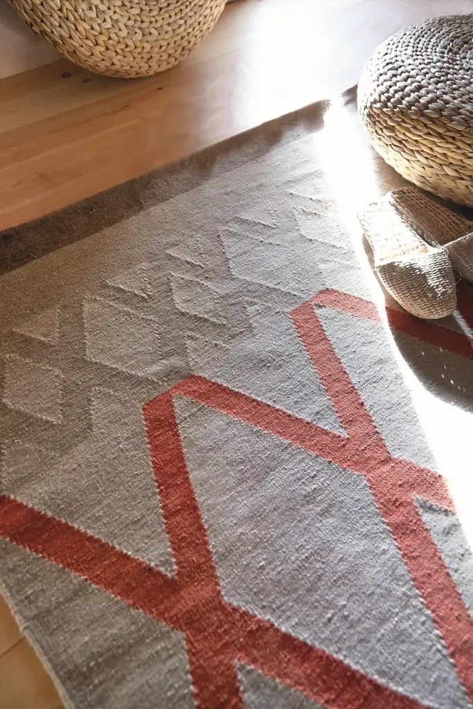 Fibre composition: 100% wool.Total weight approx: 1'7 kg/m² - 0,35 lbs/ft²Total height approx: 6 mm.Reversible.Manufacturing technique: KILIM.A basic rug, classic, practical, accesible…and now contemporary as well. Always in wool, reversible and obviously hand-made. 100% new wool.