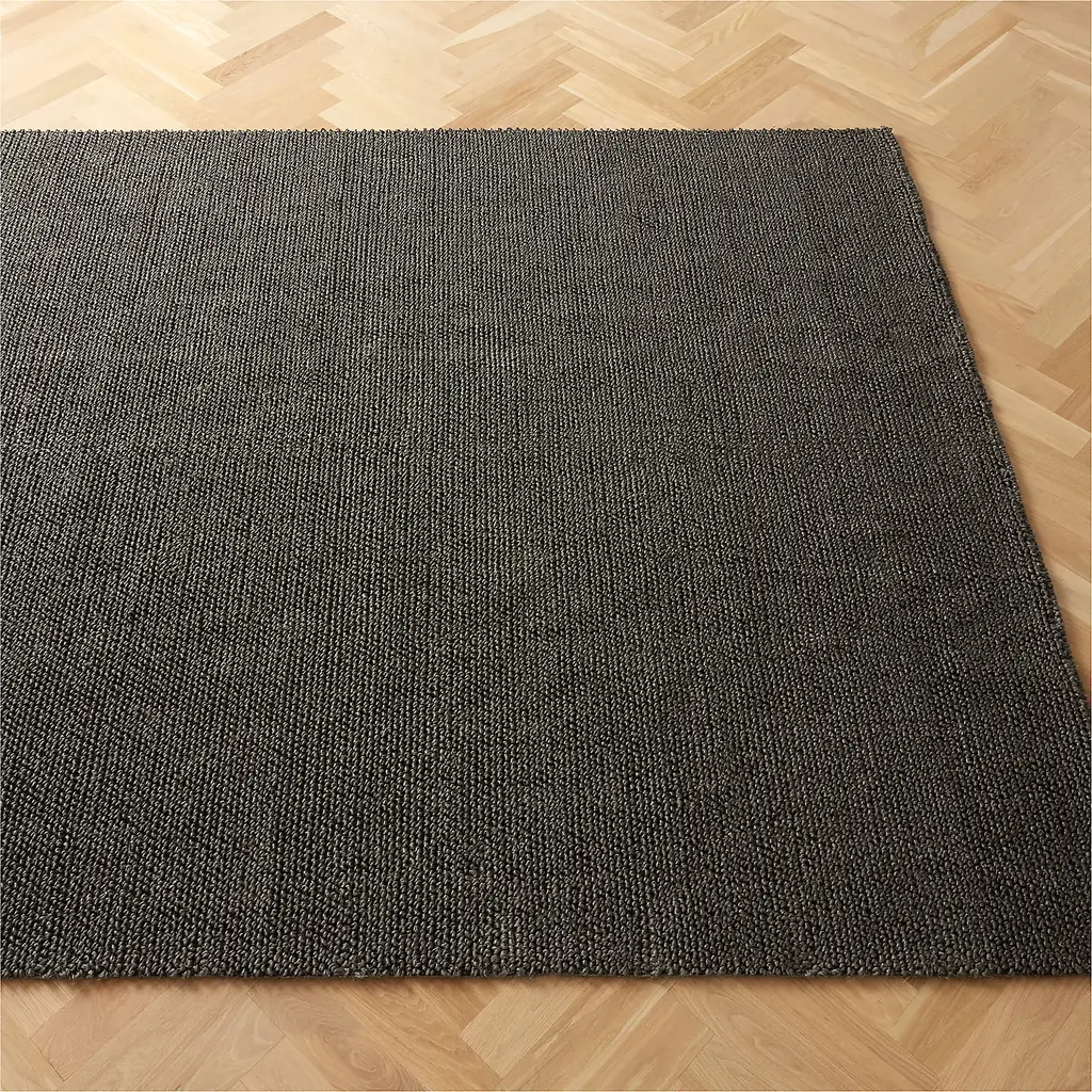 Loomed by hand in India from thick strands of dyed sisal, charcoal rug warms up living rooms, dining rooms and entryways with its organic weave. Strong and durable for long wear, the natural fiber offers a richly textured surface. CB2 exclusive. How will it look in your room? 12"x12" rug samples are available in stores for a fee refundable upon return of the sample.
