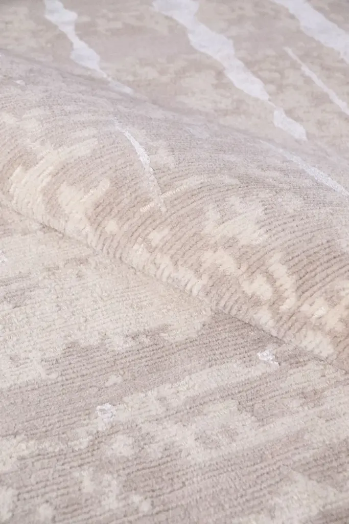 Material: Wool, Bamboo Silk, AlloKnot Density: 60 knots/inch²Pile Height: 5mmTechnique: Hand-knottedCustom sizes and colors on requestThe "ideal home," a safe place where answers to design needs coexist with ethically sourced, natural materials, inspires the Maison Six collection. The intricate designs, featuring complex patterns and soft and natural tones, where surfaces appear grooved and soft simultaneously, create a harmonious and balanced environment, perfect for any modern home and every human, even the youngest. The Maison Six hand-knotted collection focused on comfort, well-being, and more sustainable, durable, ecological, and healthy choices. The composition of wool, silk, bamboo silk and allo can be replaced by hypoallergenic and recycled fibers to be a good fit in any house room.The Two White rug is available in 66% wool, 18% bamboo silk, and 16% allo, 80 knots/inch², 2-6 mm pile height, in the four standard sizes or custom-made.