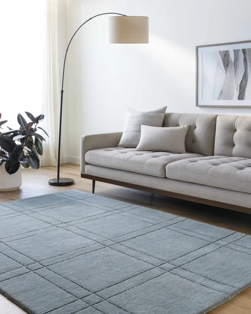Collection: Sixto Colors: Sage Construction: Hand Tufted Material: 100% Wool Pile: Medium Pile Pile Height: 0.39" Styles: Contemporary Backing: Canvas Made In: India Thickness: 0.59" Price Range: $$$$$ (Affordable)