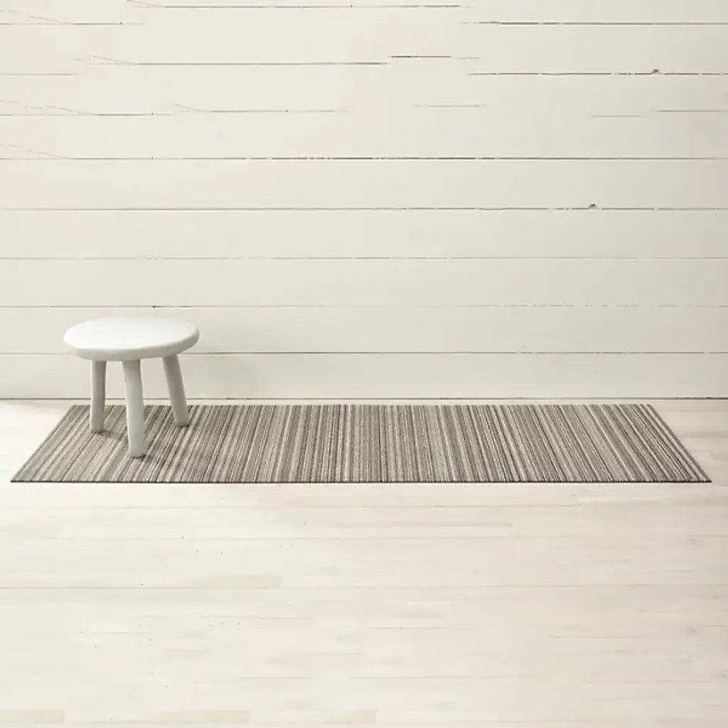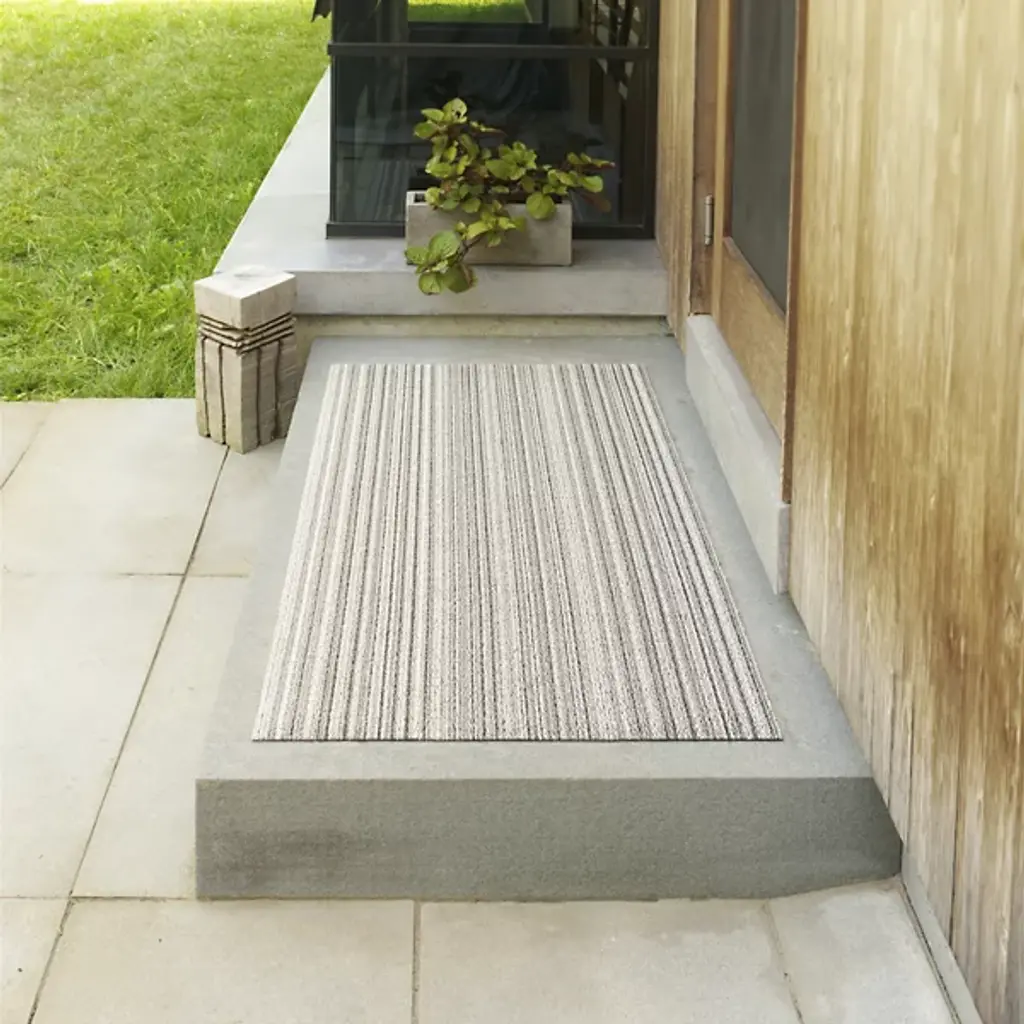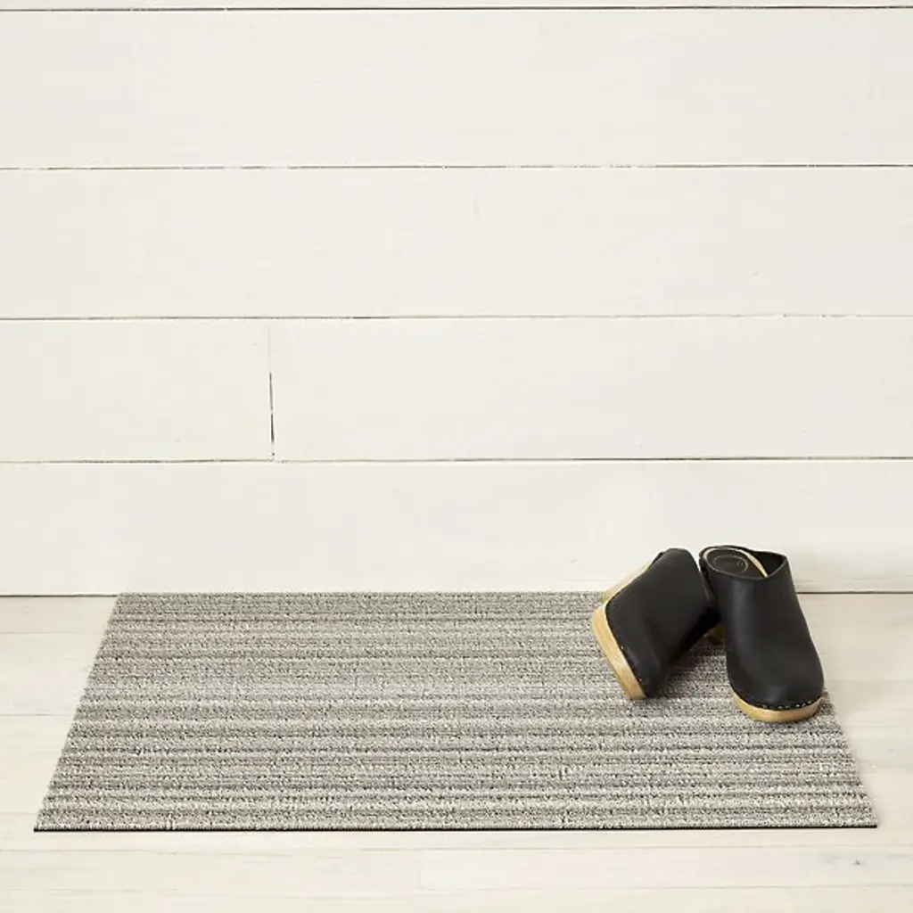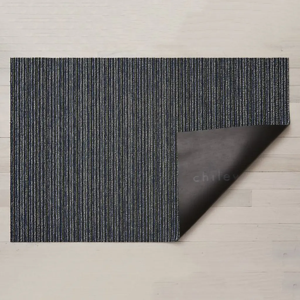 Quick to dry and mold and mildew resistant, the Chilewich Skinny Stripe Shag Indoor/Outdoor Mat is a great option for near showers and front and back doors. The rug is tufted from durable vinyl yarns to create its textured shag look. Made in the USA; designed by Sandy Chilewich.