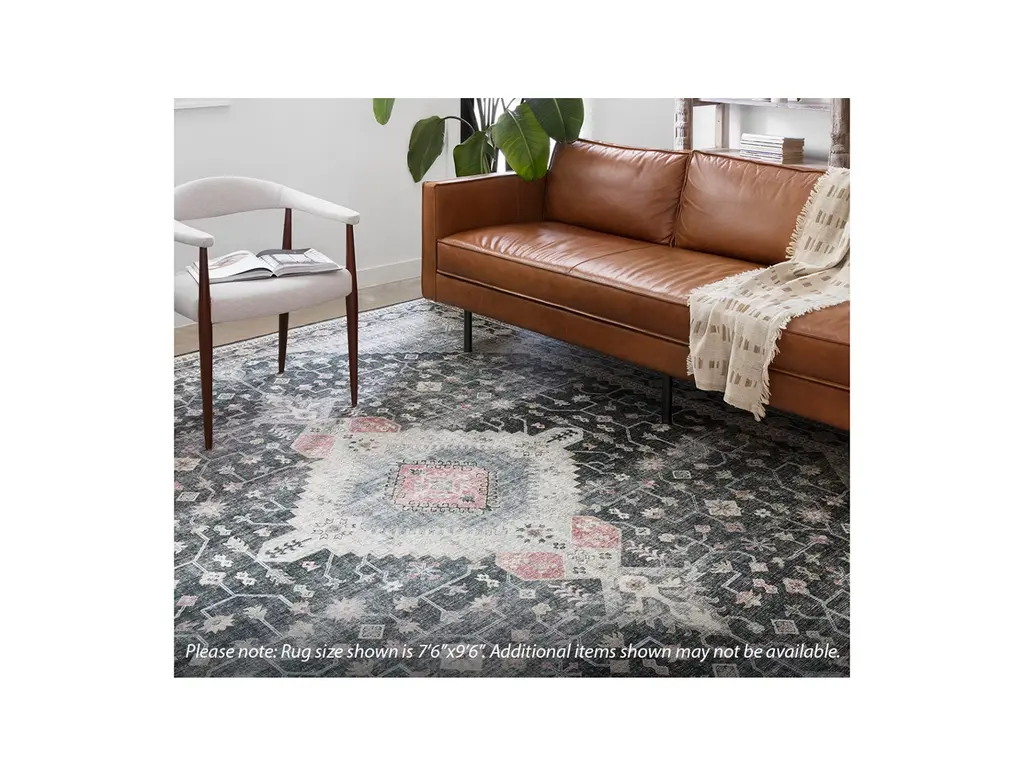 Crafted by Loloi Rugs, the vintage-faded beauty of the Charcoal Multi Area Rug boasts a traditional intricate pattern in soft grey hues with blush pink, gold, and ivory accents that makes a colorful foundation for any room in your home.