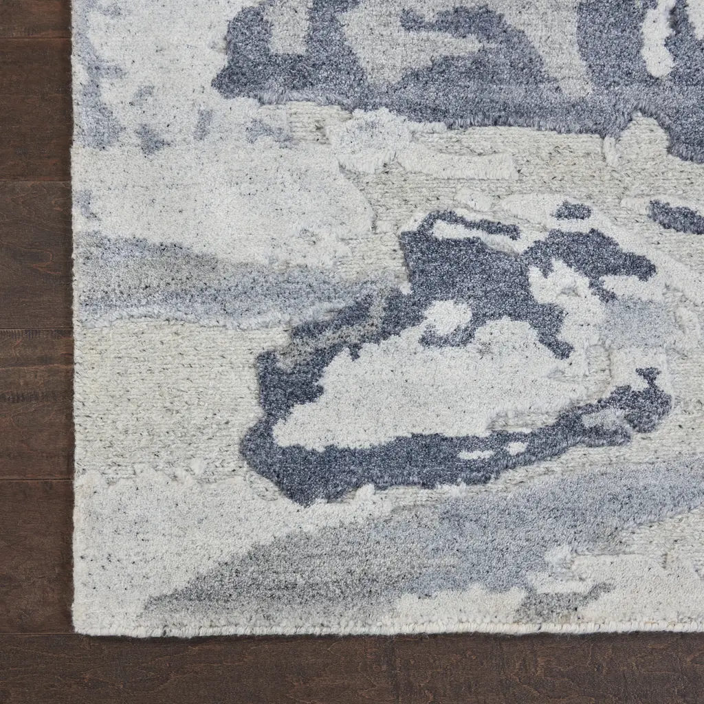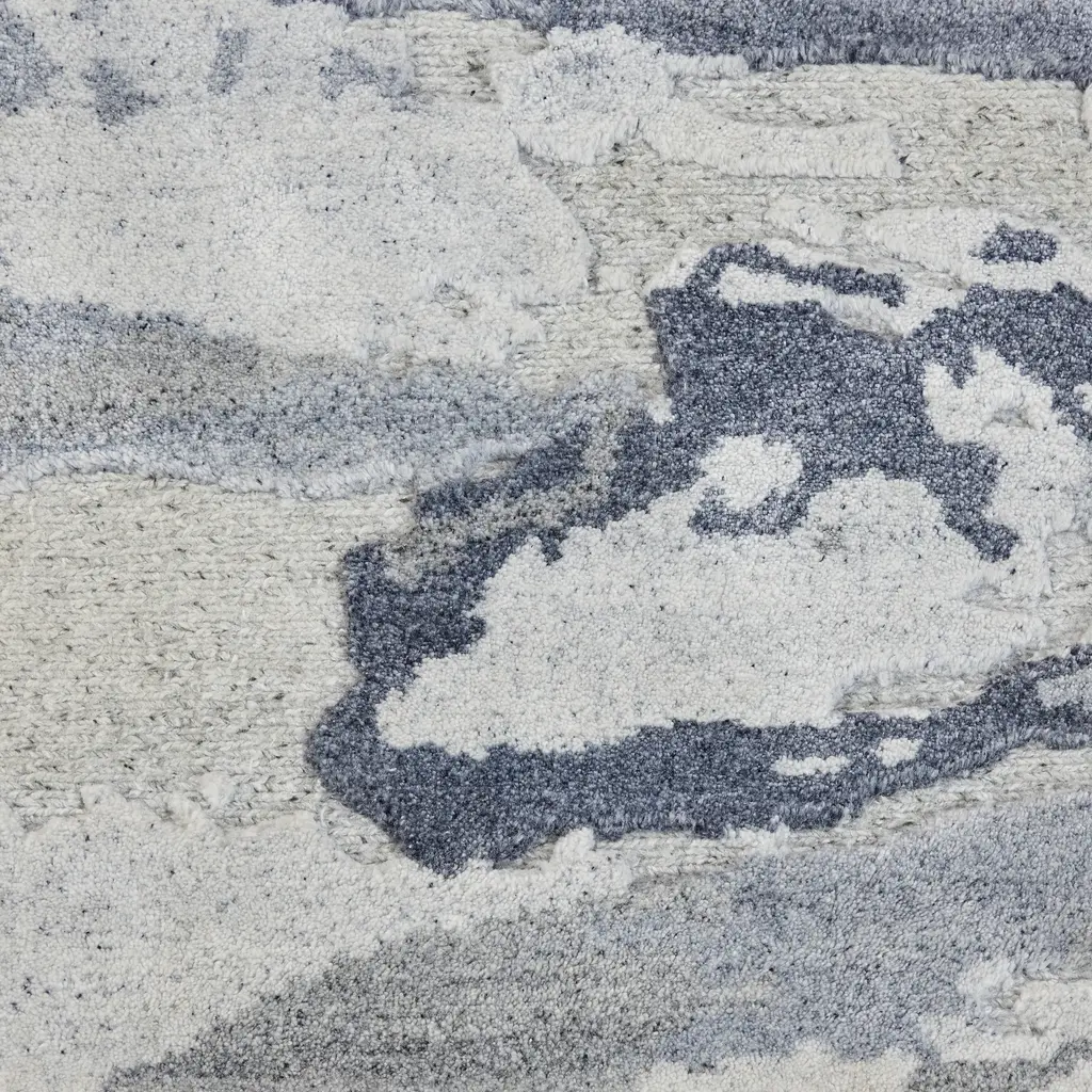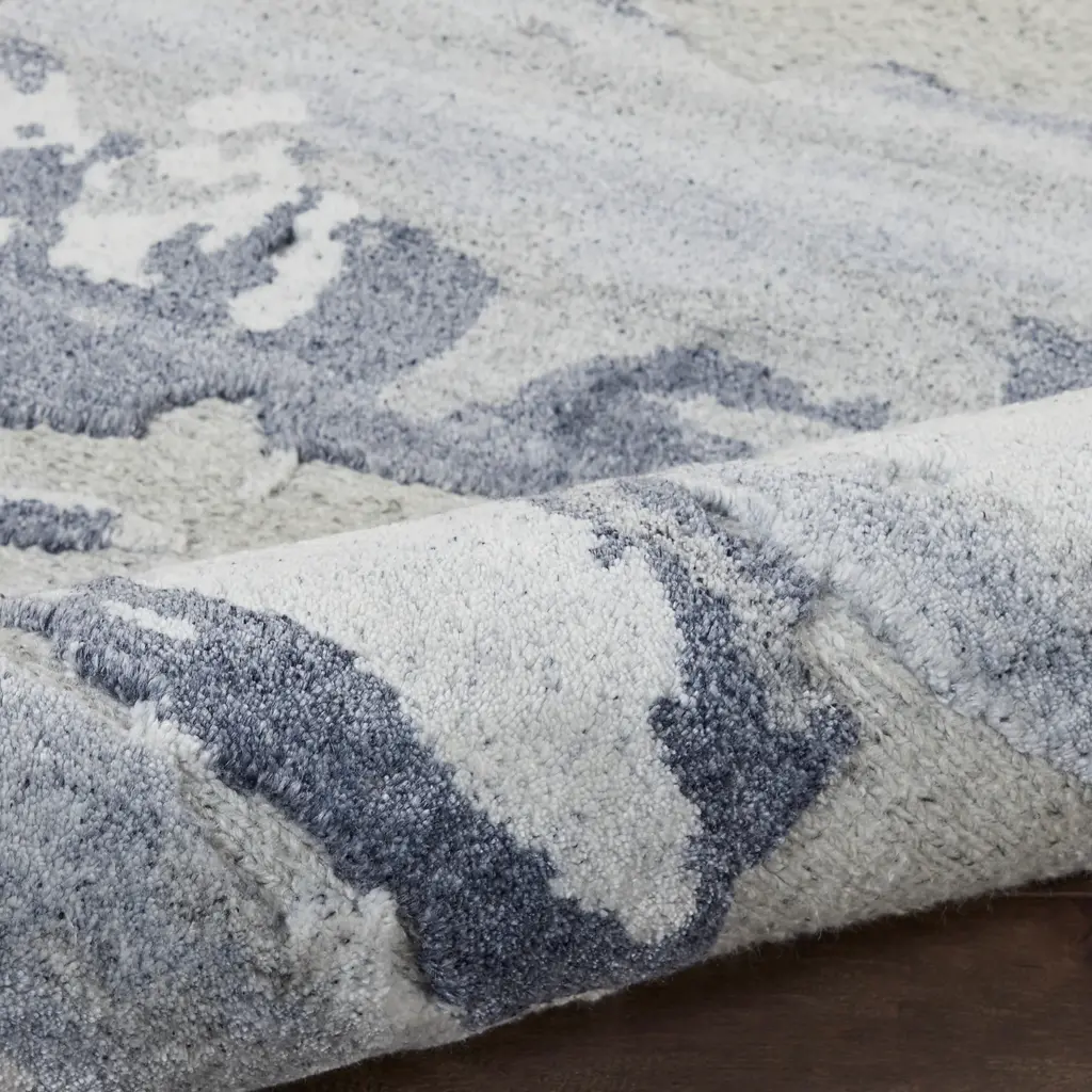 A rug can be a revelation. This Slate Essentials Modern Wool Luxcelle Blend Rug, with its intricate patterns and an array of slate tones, transforms any space it inhabits. It brings a modern flair that transcends mere decoration, morphing into a statement piece that seamlessly adapts to minimalist sleekness or the more layered charm of urban-inspired decor. Sized at an ideal 5'6" x 7'5", it invites itself into a living room as the visual anchor, nestles comfortably within a master bedroom, or graces a dining area with its artful allure. What sets this rug apart is its blend of materials—31% premium New Zealand Wool mingling with 69% Luxcelle. New Zealand Wool is the workhorse, prized for its durable resilience and sumptuous softness, promising lasting comfort without losing its polished poise. Then there's Luxcelle, the seductress, known for its silky sheen and gentle reflection of light that delivers a sophisticated gleam. Together, they craft a textured experience that's as robust as it is inviting, capable of withstanding the hustle and bustle of vibrant home life. Handcrafted in India, this rug marries traditional techniques with modern design philosophy. Its abstract pattern, playing with lighter and darker slate tones, suggests movement and depth without shouting for attention. It complements furniture arrangements while grounding them, offering a soft landing that's both elegant and practical. A testament to advanced textile technology fused with skilled artistry, it delivers an essence of both luxury and functionality—a tapestry of style that resonates with any home seeking a blend of comfort and refined panache.